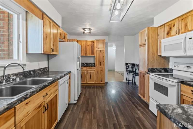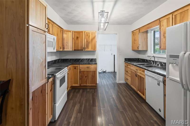 Don't miss out on this 3BR/2BA brick ranch with a 2 car attached garage. Large LR w/plenty of natural light provided by the double window. Dining room features hardwood floors & is open to the LR. There is an enclosed room off the DR (not heated/cooled). Kitchen was remodeled in 2000 w/beautiful cabinetry, breakfast bar includes 3 stools & luxury vinyl flooring. Refrigerator, dishwasher, built-in microwave & range/oven-electric (has gas hook up) included. Hall bath remodeled 2021 w/new flooring, toilet & shower. Primary BR has double closet & dressing table. Primary bath flooring & toilet new in 2023. Garage has 2 storage closets & built-in shelving. Fenced back yard has patio, Cardinal 10 x 12 utility building w/loft (6-7 yrs old) & canopy covered gazebo. Whole house attic fan. Roof, gutters & vinyl sided gables replaced 2020. Crawl space is approx. 4 ft.