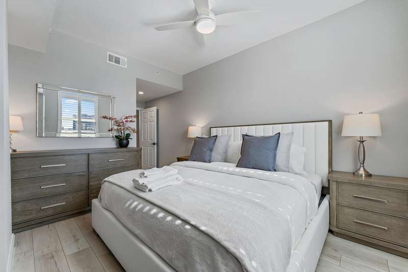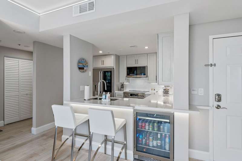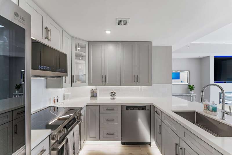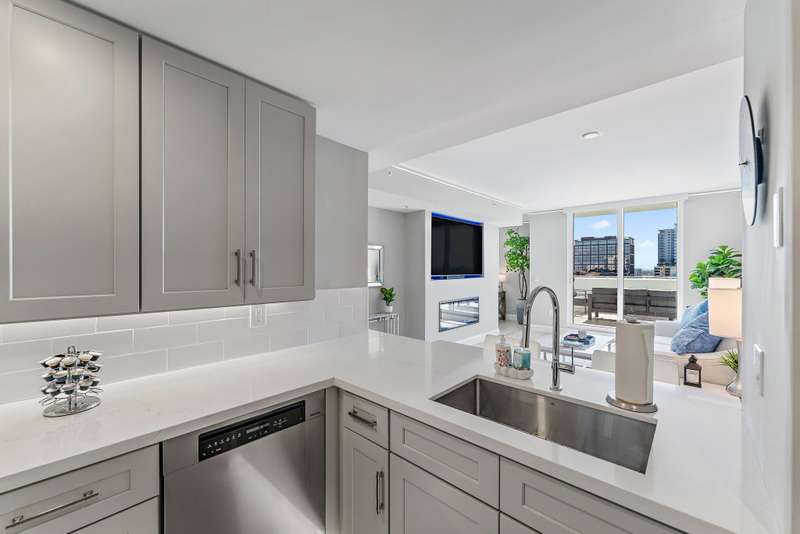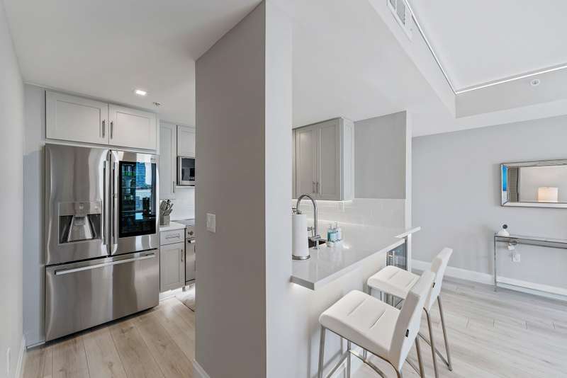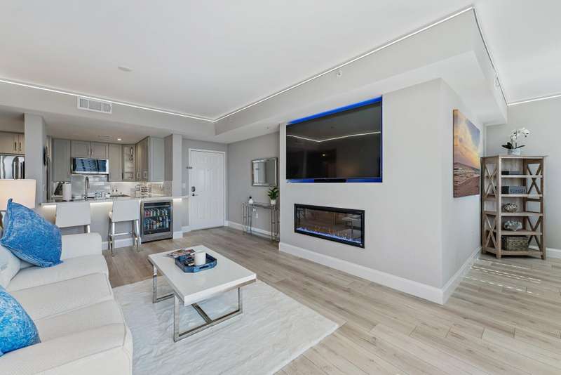 FULLY FURNISHED AND TURNKEY! Immaculate elegantly renovated, perfect for executive relocation/temporary housing, long-term residents or seasonal visitors. This beautiful, newly renovated one bedroom with den/office and oversized private terrace is appointed with high-end furnishings, gourmet kitchen, custom lighting and luxurious finishes. No detail was spared on this project. The pictures say it all! Relax on your own private outdoor space at this premium condo with dedicated garage parking. spot. Available for occupancy July 1, 2025 for off seasonal rental and seasonal rental fall of 2025 and Season 2026. The Strand is a high rise condominium with a prime downtown location, all new private fitness center, security attendant, pool and rooftop sun deck. RENTED NOV 2025 -APRIL 2026