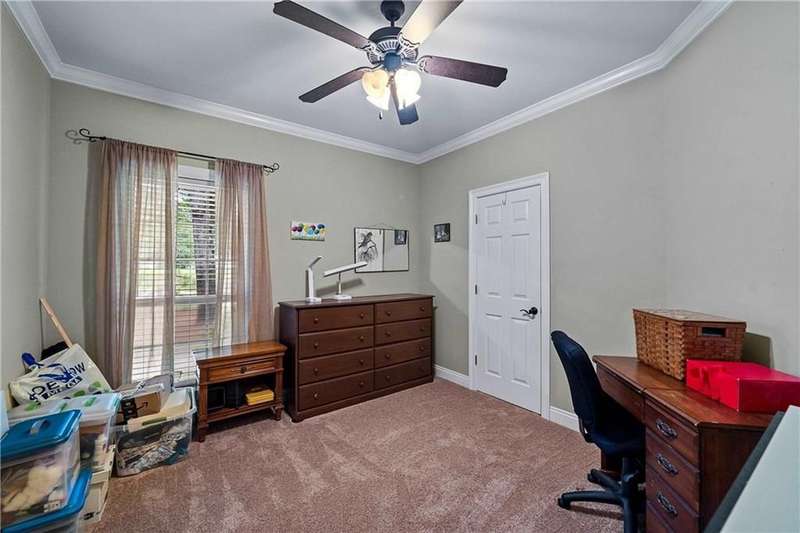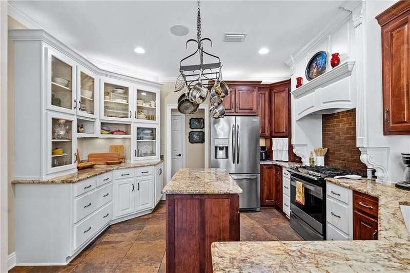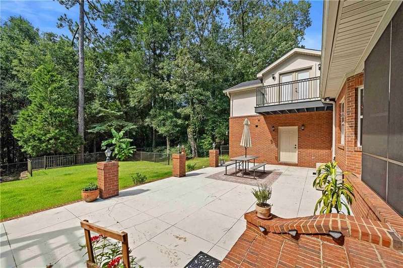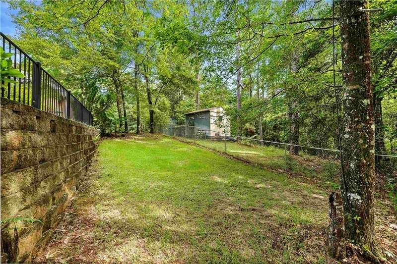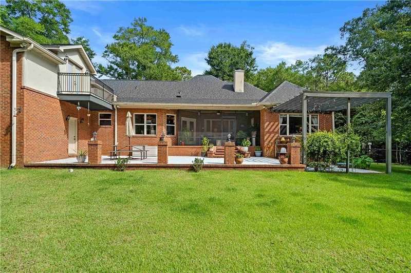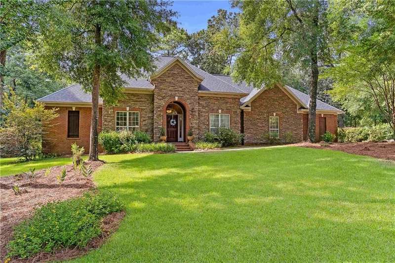 New Price!! Curb appeal galore, with a gorgeous 1 acre+ lot and new FORTIFIED ROOF! This custom-built home (3 bedrooms/2 full baths, plus office and bonus room) is stunning with the stacked stone exterior and beautiful updated landscaping, perfectly nestled on a 1.24 ACRE lot in popular Blakeley Forest. This home was COMPLETELY REMODLED IN 2011, has a functional floor plan, with mostly 1 level living and an oversized 3-CAR GARAGE. Split floor plan with Primary suite on one side, 2 bedrooms with Jack N Jill bath on the other, big bonus room and half bath upstairs with big WALK IN ATTIC SPACE and loads of closets and storage space in this house. In 2011, new plumbing, tankless water heater, all appliances and fixtures replaced. Large Primary bedroom suite with walk in shower w/updated tile and air jet soaking tub. Beautiful kitchen with gas cook top, center island, breakfast bar, WALK IN PANTRY, plus eat in dining area overlooking beautiful patio and backyard. Special features include a true HOME OFFICE with built-ins, large BONUS ROOM and half bath upstairs, plus spacious SCREENED IN PORCH, large open patio with fire pit, 3-CAR GARAGE and separate STORAGE BUILDING. The yard goes well beyond the fence line with plenty of trees and backs up to a peaceful creek. IRRIGATION is on well water. Convenient Spanish Fort location, just minutes to area shopping, dining and the Causeway towards Downtown Mobile. Buyer to verify all information during due diligence.