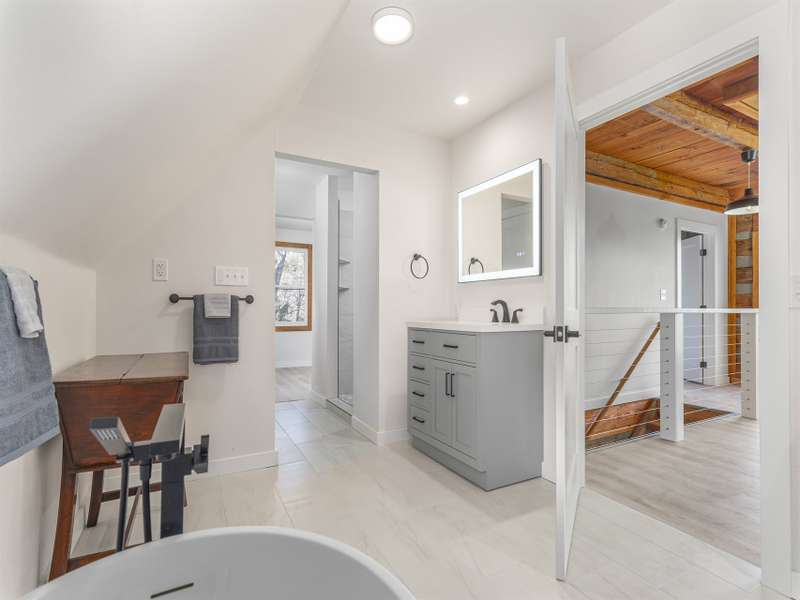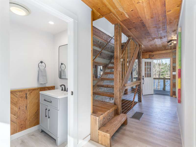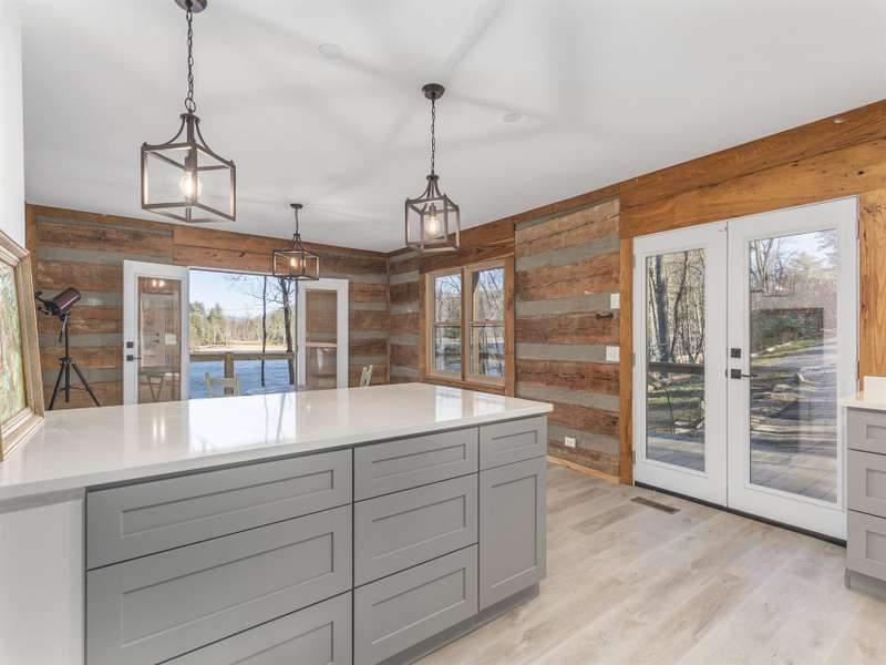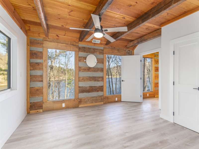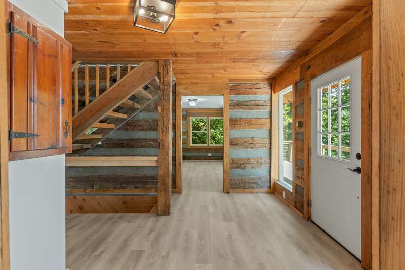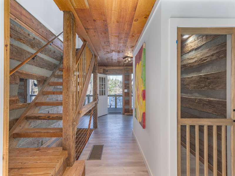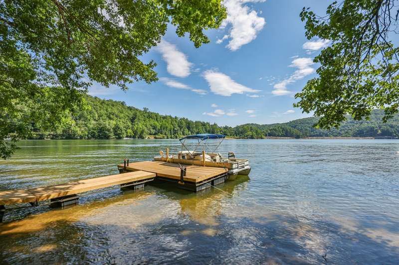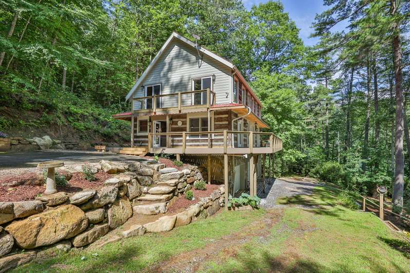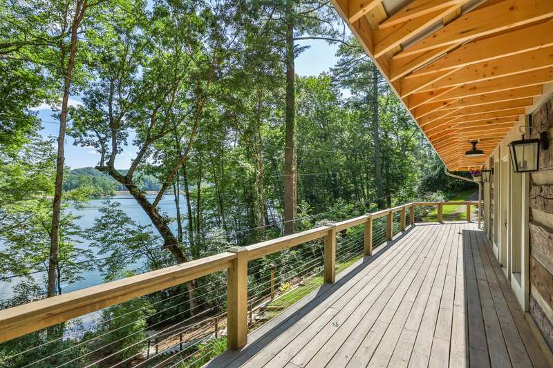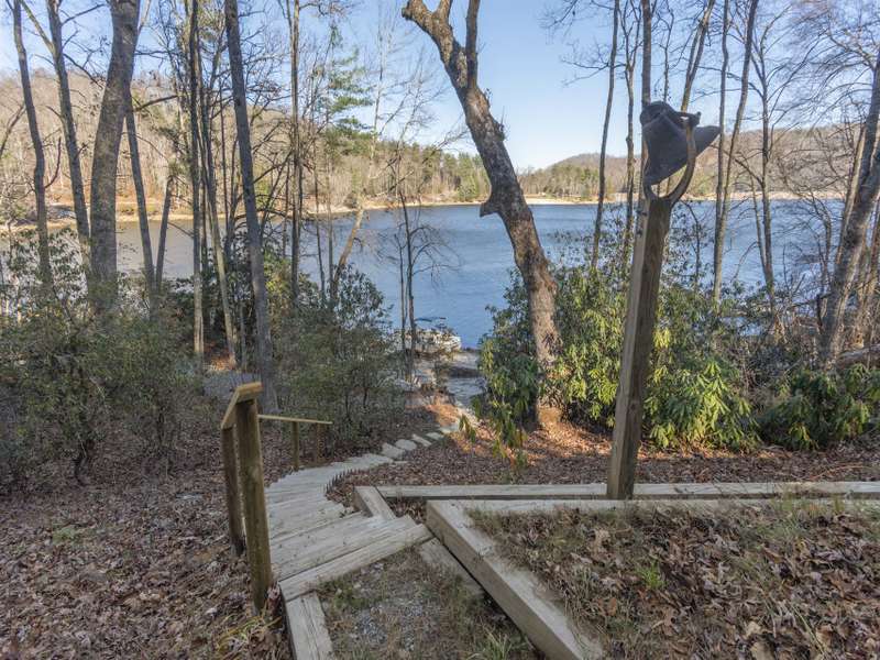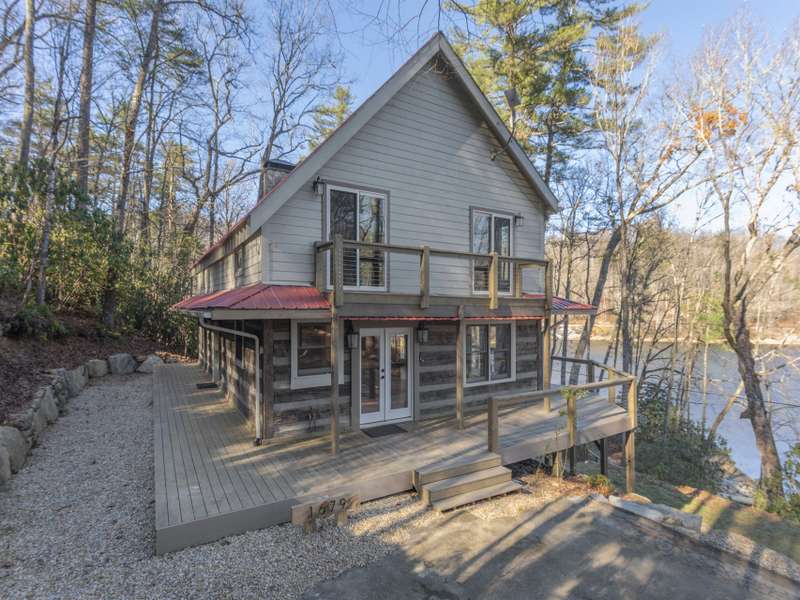 A secluded lakefront retreat nestled on the tranquil shores of Lake Glenville, this reclaimed Chestnut log cabin offers breathtaking views, unmatched serenity, and uncommon privacy. The park-like parcel has both cartpath and step access to the private dock and beach. The spacious living room is anchored by a large wood-burning stone fireplace, creating a warm and inviting atmosphere. The newly updated eat-in kitchen has custom-quality cabinetry and abundant quartz counters, ideal for cooking and entertaining. The primary bedroom is a true sanctuary, with its own private balcony overlooking the lake, a sitting room, ample closet space, and vaulted cathedral ceilings. Downstairs, you'll find a large den with fireplace, and a garage that could be transformed into more living space. The wraparound partially covered deck and a stone fire pit area are perfect for lakeside evenings/dining. Whether a residence or vacation property, this home provides the ultimate lakefront experience.