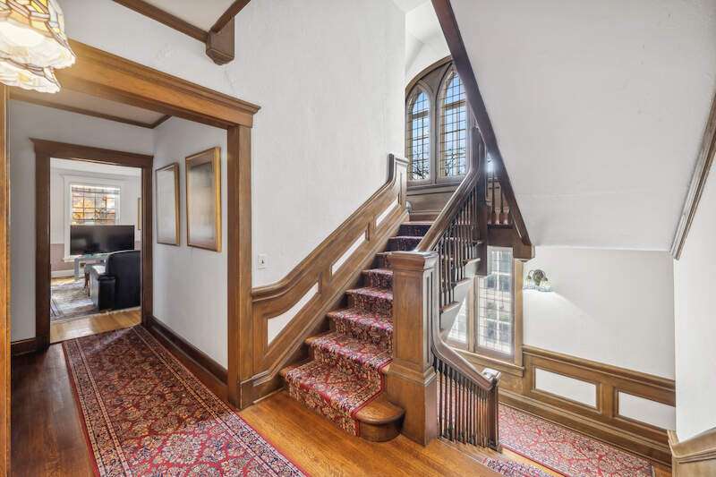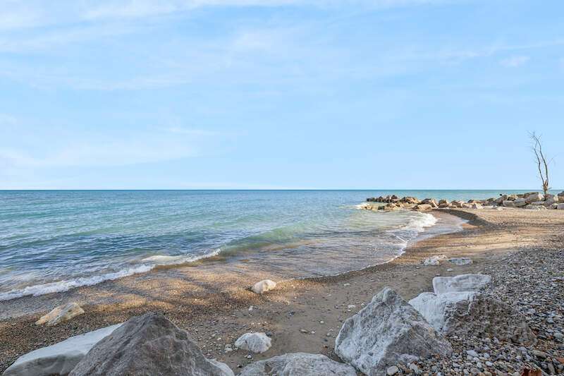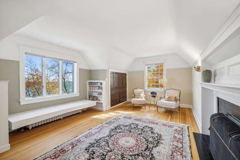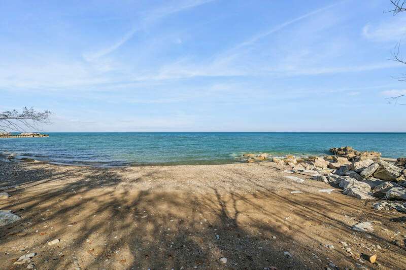 Rare opportunity to own this beautiful lakefront home on almost 4 acres w/ 300' of Lake Michigan shoreline on coveted Mayflower Road. Located down a tree-lined driveway at the end of a private lane, this stately brick home was built in 1914 and features 7 bedrooms, 6.1 bathrooms, 6 fireplaces, original millwork, high ceilings, a gourmet kitchen, an elevator, a newer slate roof, and wonderful vintage details throughout. On the 1st floor, you'll find a large library w/ built-in shelving, a wood-burning fireplace, beautiful trim & millwork, and wonderful character. The family room overlooks Lake Michigan and contains three walls of floor to ceiling windows allowing for amazing views all year long. The spacious kitchen features commercial grade appliances, a Butler's Pantry, Storage Pantry, an island, and plenty of storage & prep space. On the 2nd floor, the large Primary Suite contains a bedroom w/ wood-burning fireplace and views of the lake, a huge dressing room w/ abundant closet space, built-in dressers, vanity table, & shelving and a spacious primary bathroom with a separate tub, shower and commode room. Three additional bedrooms, an office, a meditation room, a large linen room, and a sitting room that contains the elevator complete this level. The 3rd floor has 3 large bedrooms, 2 full bathrooms, and a game room. The unfinished basement has lots of dry storage space and can be finished out to create even more wonderful amenities (theater room, wine cellar, play space, etc.). Outside, the expansive side yard is perfect for outdoor entertaining, games, or special events. Two stone terraces provide additional space for entertaining and enjoying the stunning scenery. A stone staircase w/ handrail leads down to the lake while passing through a lovely gazebo w/ seating down by the beach. This beautiful home also has a slate roof (2003) newer mechanicals, and professional landscaping. Don't miss this opportunity to enjoy lakefront living in this amazing private setting w/ an incredible beachfront!