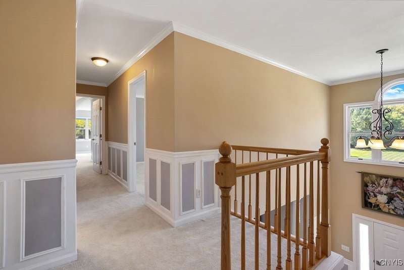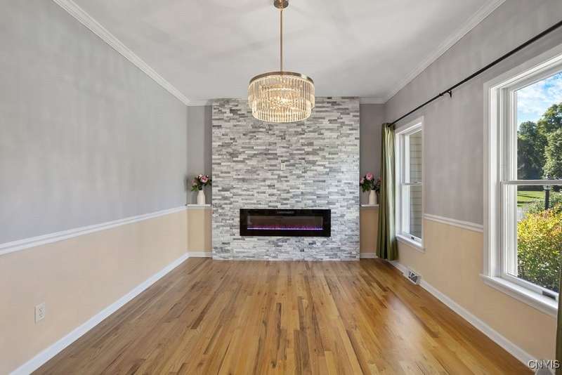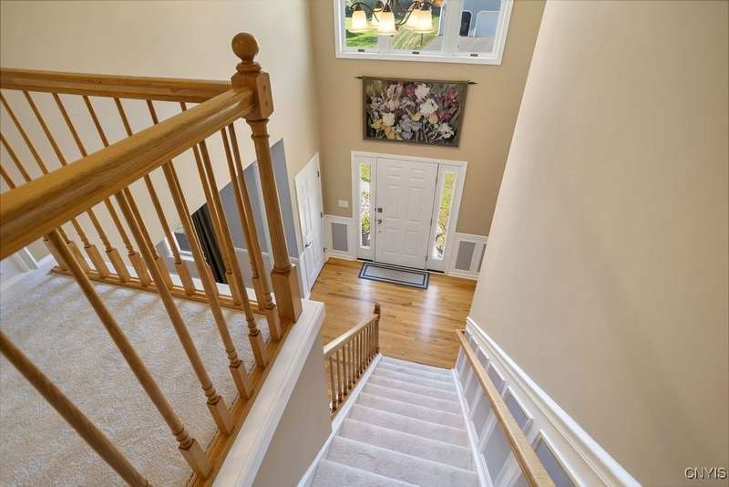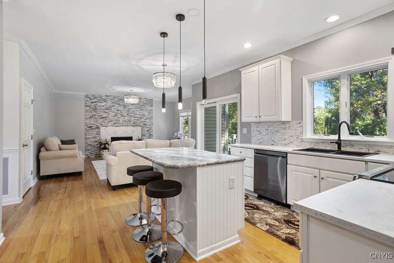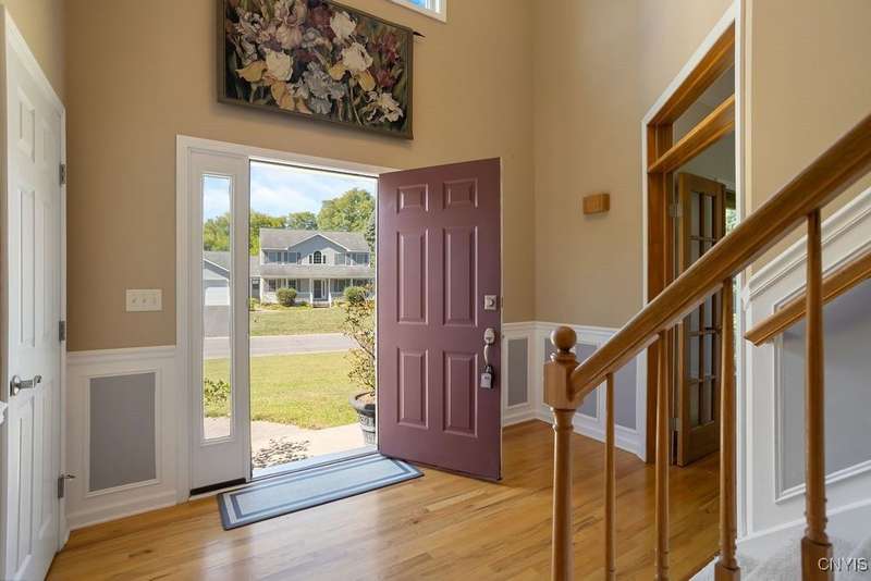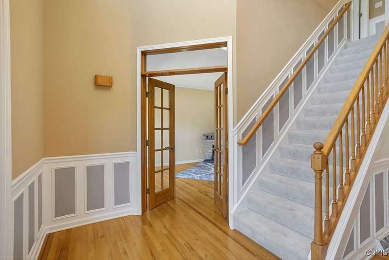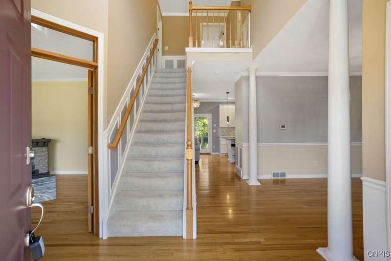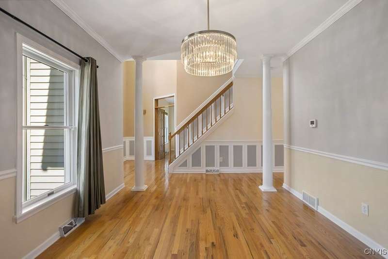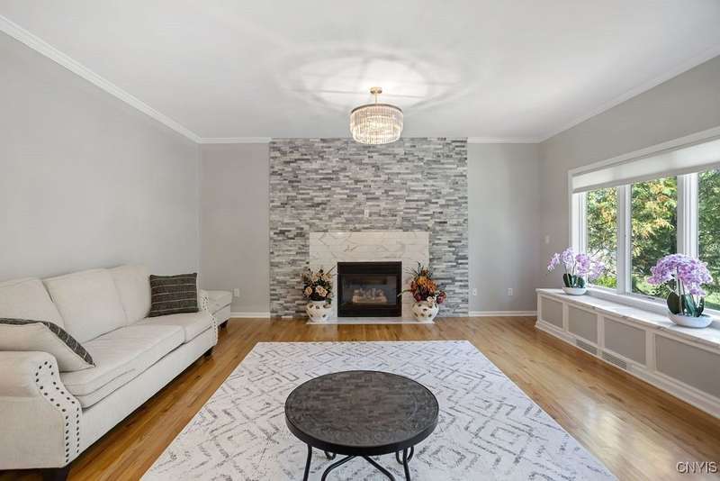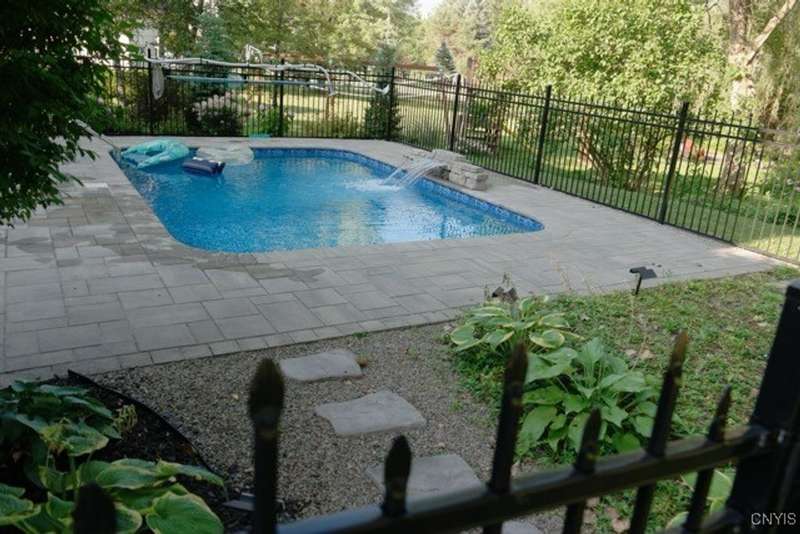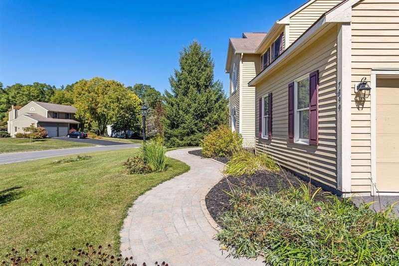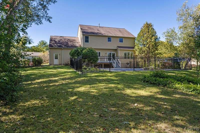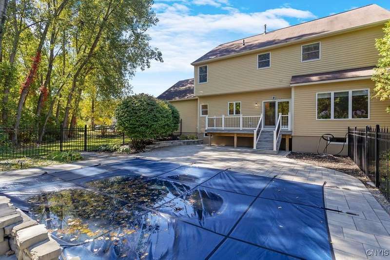 Welcome Home to 7899 E Ridge Point Rd!This stunning 4-bedroom, 2.5-bath colonial offers over 3,500 sq ft of beautifully finished living space in the highly sought-after Duguid Runne subdivision within the acclaimed Fayetteville-Manlius School District.Step inside to an impressive first floor featuring gleaming hardwood floors, a dedicated home office with French doors, and a modern, sleek kitchen with new stainless steel appliances that flows seamlessly into the spacious family room, highlighted by a gorgeous stone accent wall and cozy gas fireplace. The formal dining room is equally striking with its stone feature wall and contemporary electric fireplace, creating a warm, elegant atmosphere for gatherings.Upstairs, you'll find four generously sized bedrooms, including a luxurious primary suite with vaulted ceilings, a spa-inspired bathroom featuring a soaking tub and step-in shower, and a walk-in closet. The additional bedrooms each offer ample storage with walk-in or double closets, and the convenient second-floor laundry room adds everyday ease.The finished lower level expands your living space with a second family room, a fitness area with mirrors, and a game room ? perfect for entertaining or relaxing. An attached 3-car garage comes equipped with a Tesla charger.Outside, enjoy your own private retreat. The backyard oasis includes an in-ground, gas-heated, and saltwater pool with a Jandy system and automatic vacuum, a beautiful stone patio, and a low-maintenance composite deck ? ideal for summer entertaining and serene evenings at home.This home combines elegance, comfort, and exceptional amenities in one of the area's most desirable neighborhoods. Don't miss the chance to make it yours!