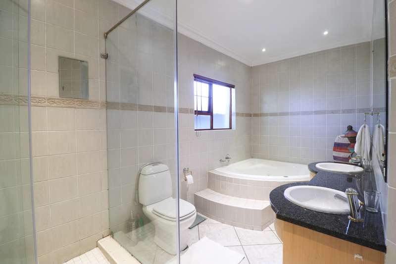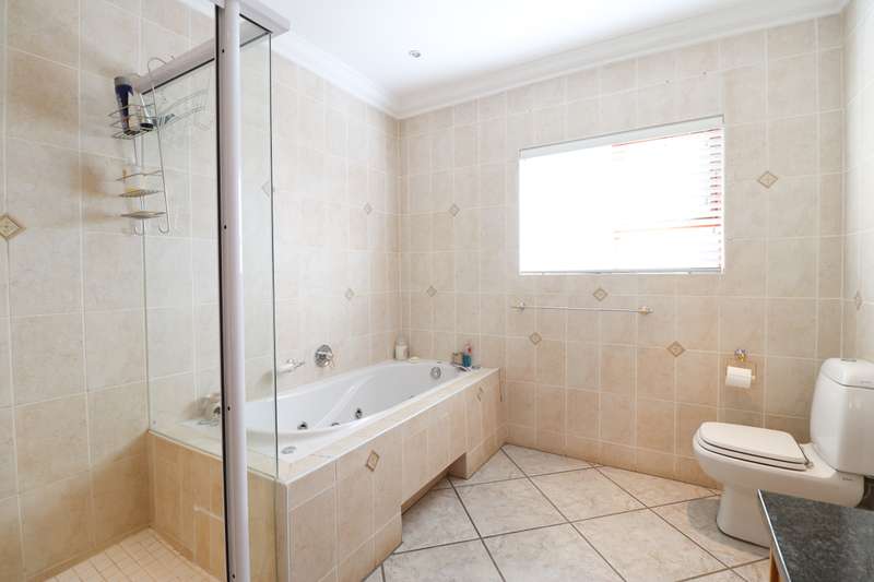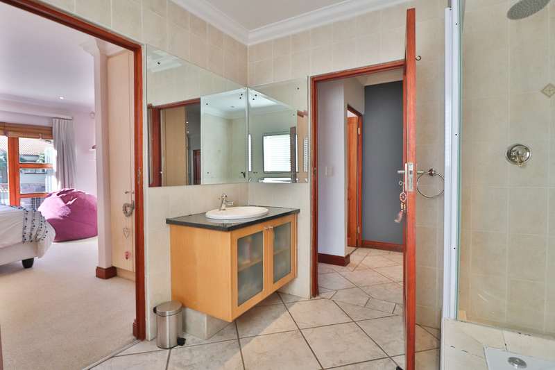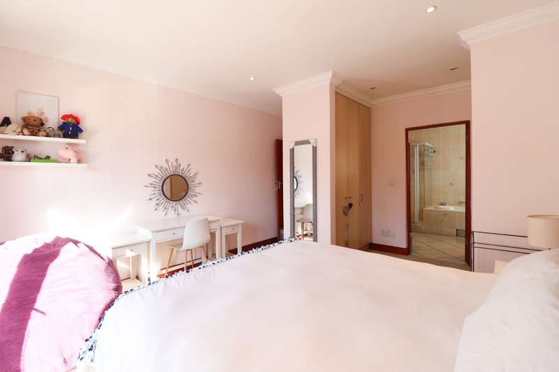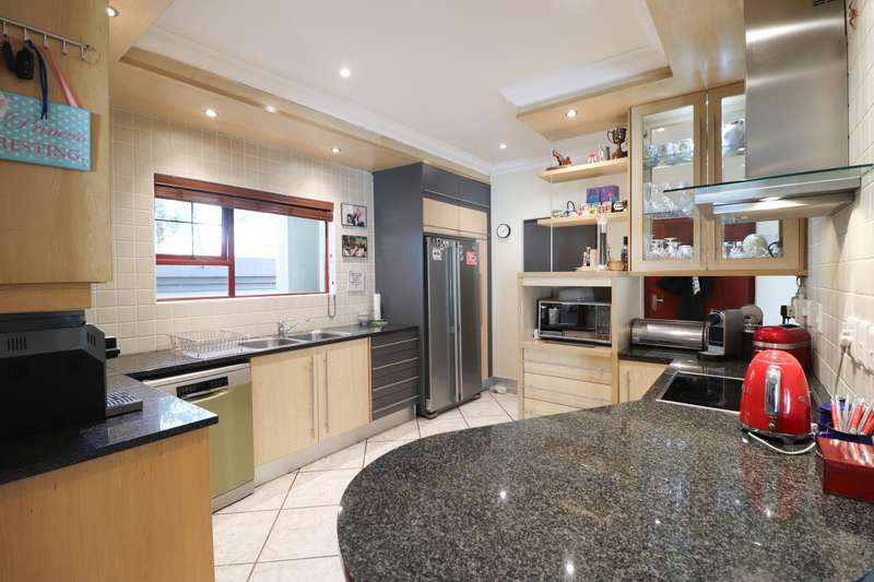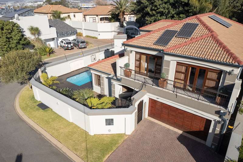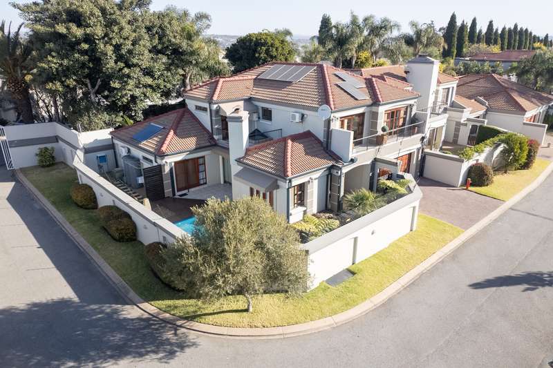 Discover the epitome of modern living in this immaculate, spacious home nestled within a highly desirable estate. Every detail of this residence exudes elegance and comfort, offering a sanctuary of style and functionality. Key Features: • Entrance: Welcoming foyer leading into the heart of the home. • Formal Family Lounge: Elegant space featuring a cozy fireplace. • Enclosed Patio: Perfect for year-round enjoyment, with stack-up doors, blinds, and a skylight. • TV Lounge: Relaxed atmosphere with a freestanding fireplace. • Guest or Main Double Bedroom: Includes an ensuite bathroom with Jacuzzi bath and double vanity, air conditioning, and a walk-in closet. • Store Room: Additional storage space for convenience. • Guest Toilet: Easily accessible for visitors. • Dining Room: Ideal for formal dining occasions. • Granite Kitchen: Sleek and modern • Private Garden: Serene oasis with a wooden deck surrounding a sparkling pool. • Built-in Braai: Perfect for outdoor entertaining. • Automated Double Garage: Convenient and secure parking. Upstairs: • Pyjama Lounge: Spacious, providing a versatile relaxation area. • Office/Study: Ideal for remote work or quiet study sessions. • Three Double Bedrooms: Each with its own ensuite bathroom and air conditioning. Additional Features: • Solar Panels with Inverter and Lithium Battery: Efficient and sustainable energy solution. • Wooden Blinds: Enhancing privacy and style throughout the home. • Back-up Water System: Includes a 4200-liter tank, pressure motor, and filtration system for peace of mind. • Solar Geyser: Energy-efficient water heating. • Outside Store Room: Convenient storage space. • Electric Fence and Trellidors: Ensuring security and peace of mind. Experience Luxury Living: Don't miss the opportunity to make this exquisite home yours. Contact us today to schedule your private viewing and experience the luxury and comfort that this property offers.