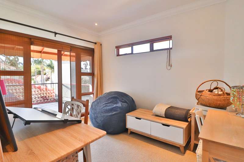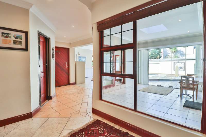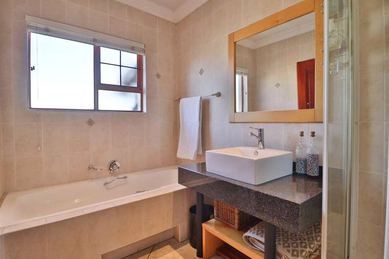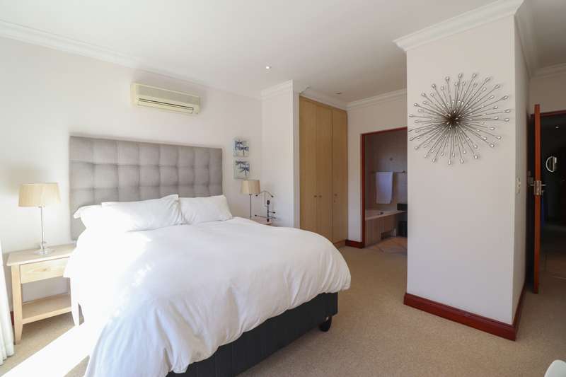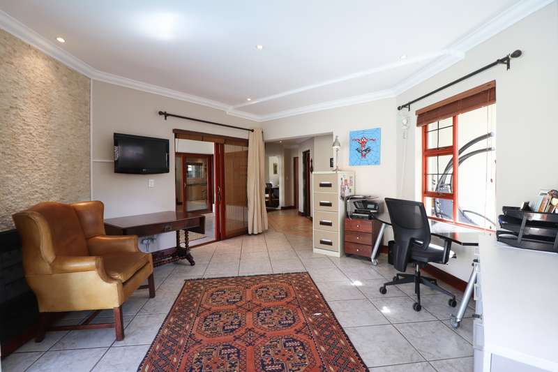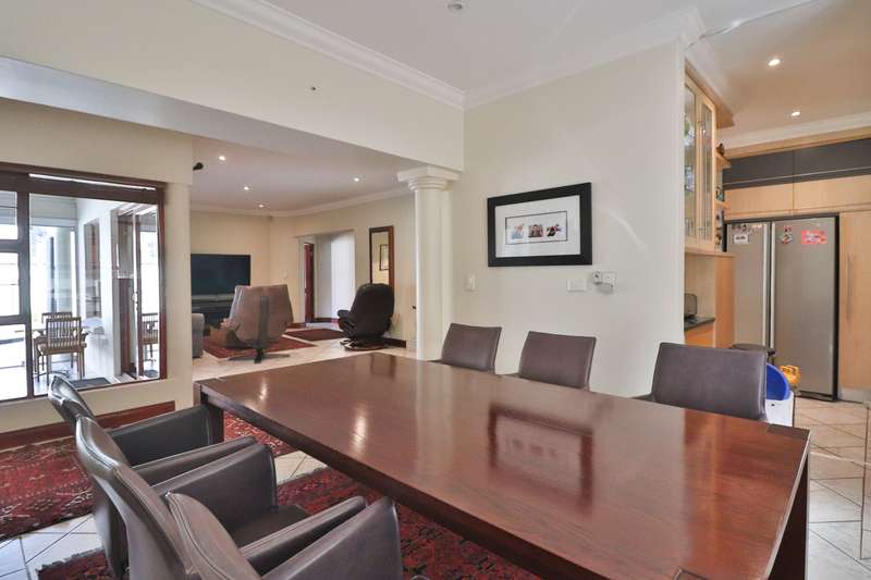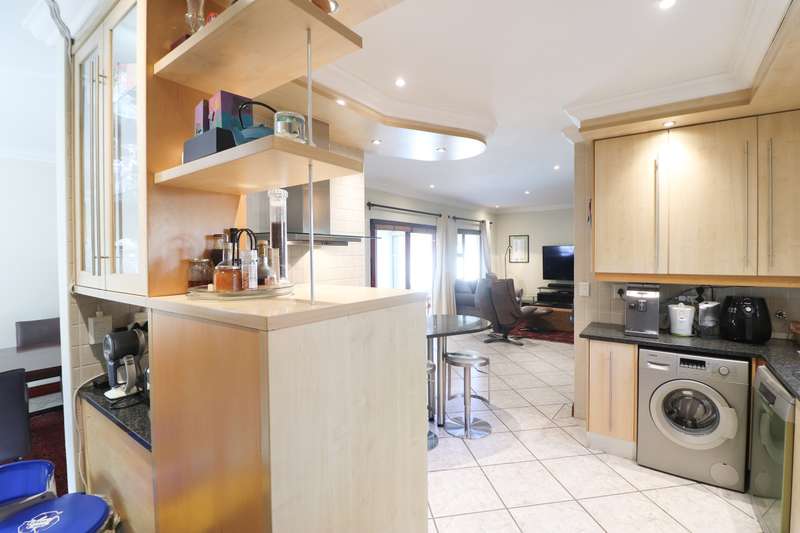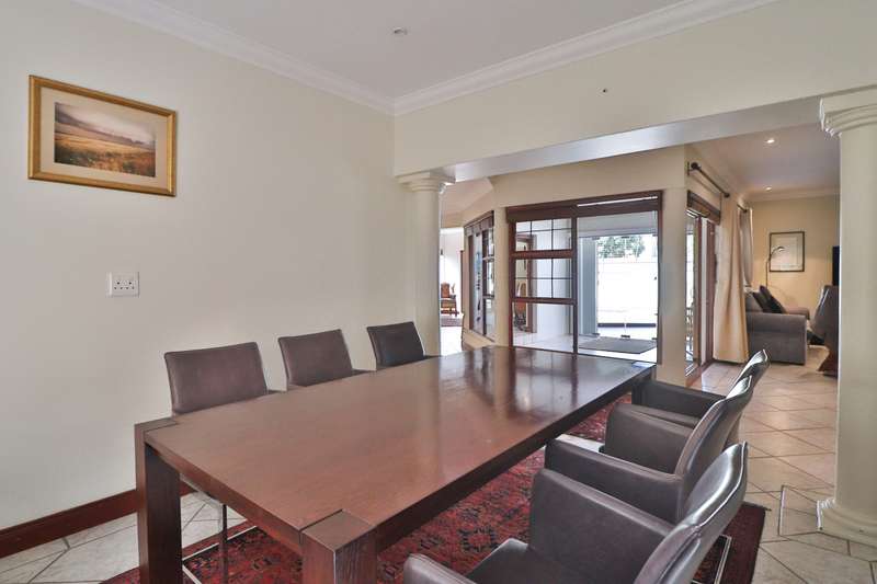 Discover the epitome of modern living in this immaculate, spacious home nestled within a highly desirable estate. Every detail of this residence exudes elegance and comfort, offering a sanctuary of style and functionality. Key Features: • Entrance: Welcoming foyer leading into the heart of the home. • Formal Family Lounge: Elegant space featuring a cozy fireplace. • Enclosed Patio: Perfect for year-round enjoyment, with stack-up doors, blinds, and a skylight. • TV Lounge: Relaxed atmosphere with a freestanding fireplace. • Guest or Main Double Bedroom: Includes an ensuite bathroom with Jacuzzi bath and double vanity, air conditioning, and a walk-in closet. • Store Room: Additional storage space for convenience. • Guest Toilet: Easily accessible for visitors. • Dining Room: Ideal for formal dining occasions. • Granite Kitchen: Sleek and modern • Private Garden: Serene oasis with a wooden deck surrounding a sparkling pool. • Built-in Braai: Perfect for outdoor entertaining. • Automated Double Garage: Convenient and secure parking. Upstairs: • Pyjama Lounge: Spacious, providing a versatile relaxation area. • Office/Study: Ideal for remote work or quiet study sessions. • Three Double Bedrooms: Each with its own ensuite bathroom and air conditioning. Additional Features: • Solar Panels with Inverter and Lithium Battery: Efficient and sustainable energy solution. • Wooden Blinds: Enhancing privacy and style throughout the home. • Back-up Water System: Includes a 4200-liter tank, pressure motor, and filtration system for peace of mind. • Solar Geyser: Energy-efficient water heating. • Outside Store Room: Convenient storage space. • Electric Fence and Trellidors: Ensuring security and peace of mind. Experience Luxury Living: Don't miss the opportunity to make this exquisite home yours. Contact us today to schedule your private viewing and experience the luxury and comfort that this property offers.