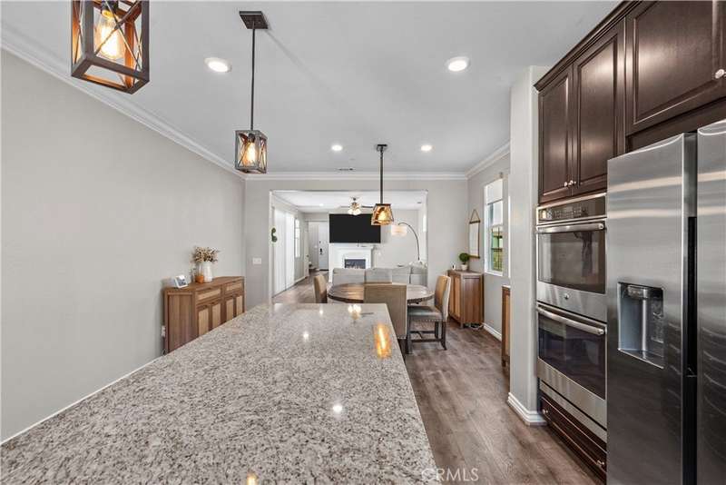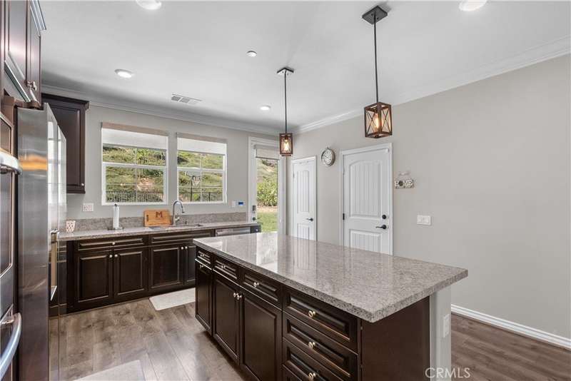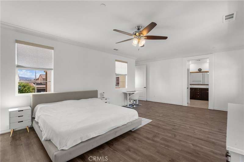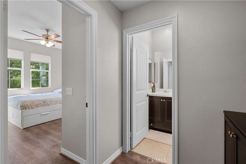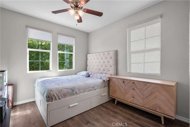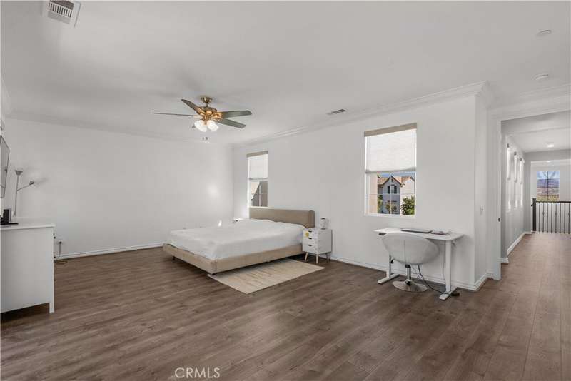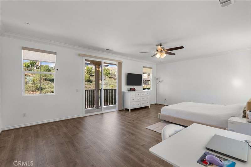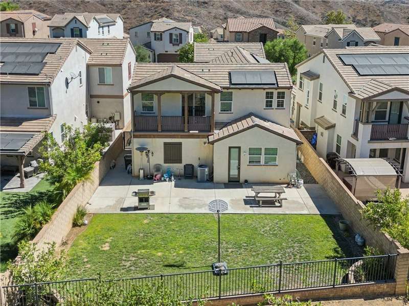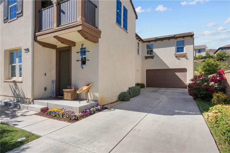 Welcome to 29031 Via Patina – a beautifully upgraded 4-bedroom, 3-bathroom solar-powered home located in the prestigious gated West Hills community of Valencia. With 2,351 sq. ft. of living space, this home offers the perfect balance of comfort, style, and functionality. Step inside to a dramatic two-story foyer with wrought iron railings and rich hardwood floors. The open-concept living room, complete with a cozy fireplace, flows seamlessly into the dining area and gourmet kitchen—featuring stainless steel appliances, a five-burner cooktop, and a large granite island perfect for entertaining. Downstairs offers a full bedroom and bathroom, ideal for guests, in-laws, or a home office. Upstairs, you’ll find two spacious secondary bedrooms—one with its own private balcony and stunning mountain views—plus a convenient laundry room with built-in cabinetry. The luxurious primary suite is a true retreat with a private balcony, perfect for relaxing mornings or evenings. Enjoy views of the expansive, pool-sized backyard—ready for outdoor living or your dream upgrades. This smart home is equipped with solar panels and modern tech for energy-efficient, easy living. Located within award-winning school boundaries (West Creek Academy, Rio Norte Junior High, and Valencia High), this home is perfect for families seeking top-tier education. As part of the West Hills community, enjoy resort-style amenities including: 3 sparkling pools A park with shaded playgrounds, picnic areas, and BBQs Basketball courts, paseos, hiking trails, a clubhouse, and a fire pit All this just minutes from shopping, dining, and entertainment. Don’t miss the chance to own in one of Valencia’s most desirable gated communities. Welcome home to 29031 Via Patina!