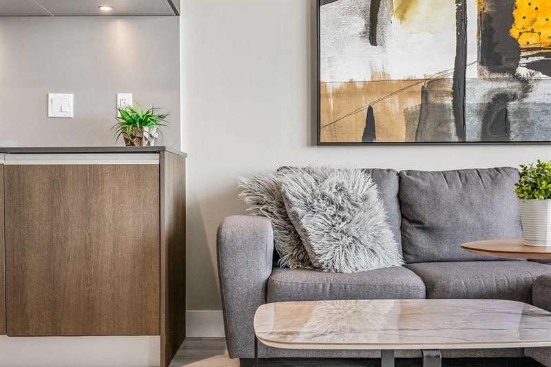 Welcome to your perfect urban retreat at The Guardian! Perched on the 18th floor, this sleek 1-bedroom unit proves that great things come in small packages. With a thoughtfully designed layout that maximizes every square inch, you’ll be amazed at how spacious it feels. Move right in—this beauty comes fully furnished with a stylish sofa, cozy bed, and everything you need to start living your best downtown life from day one. The finishing package is absolutely stunning, with modern cabinetry, quartz countertops, and floor-to-ceiling windows framing jaw-dropping city views. Love amenities? This building delivers: an incredible fitness center, residents’ lounge, concierge service, and more. Plus, this unit comes with an assigned parking stall and storage locker—hard to find downtown! Just steps to Stampede Park, East Village, restaurants, and shopping, this is your chance to live in Calgary’s most vibrant community.
