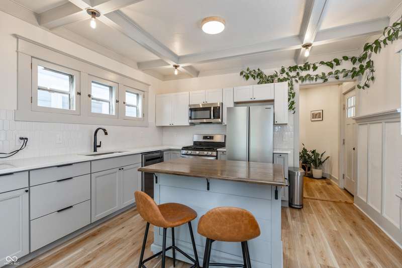 Welcome to this stunning 3-bedroom, 2-bathroom home perfectly located just minutes from downtown and the vibrant Fountain Square district. Designed with comfort and style in mind, the interior features a modern, neutral color palette. The kitchen is complete with stainless steel appliances, sleek quartz countertops, and a stylish backsplash-ideal for both cooking and entertaining. Both bathrooms have been thoughtfully updated with contemporary finishes. Outside, you'll find a newly constructed detached garage that doubles as an ideal space for entertaining. The backyard is designed for easy living with low-maintenance turf and a spacious patio, perfect for gatherings or relaxing evenings. Don't miss this move-in-ready gem in an unbeatable location! Seller is offering a 1 year home warranty.