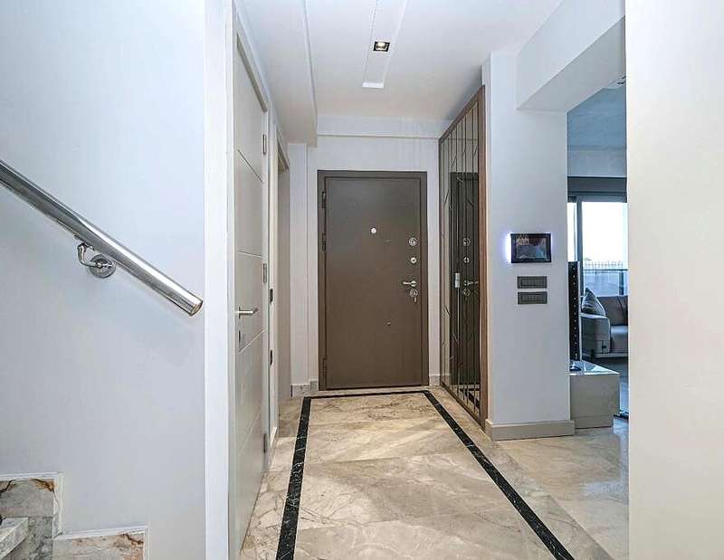 Villas have steel doors, lacquered room doors, PVC windows, and electric blinds, spot and LED lighting, air conditioners, a built-in set, tiled floors, wardrobes, a cloakroom, a central satellite system, an intercom, and internet access.