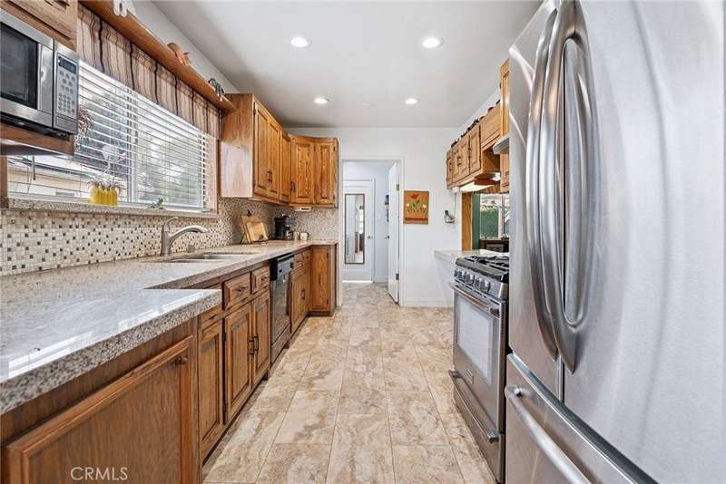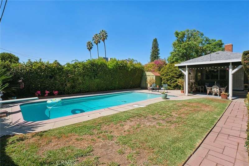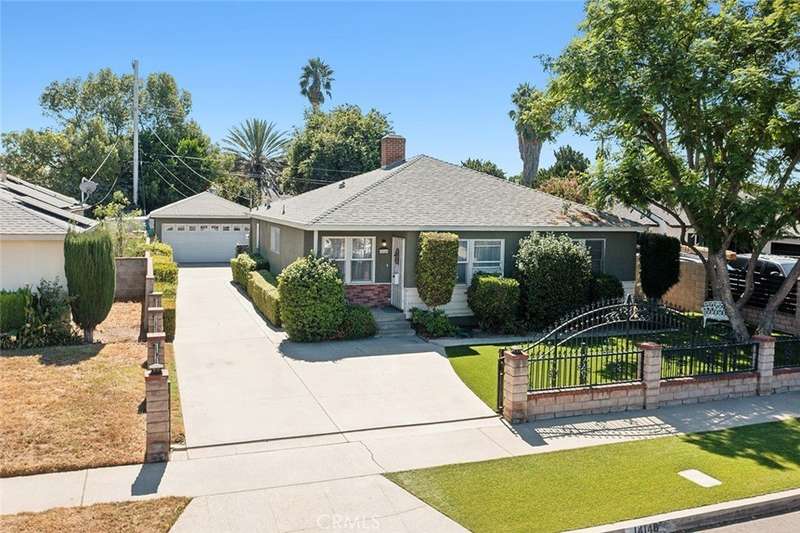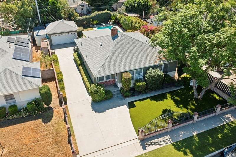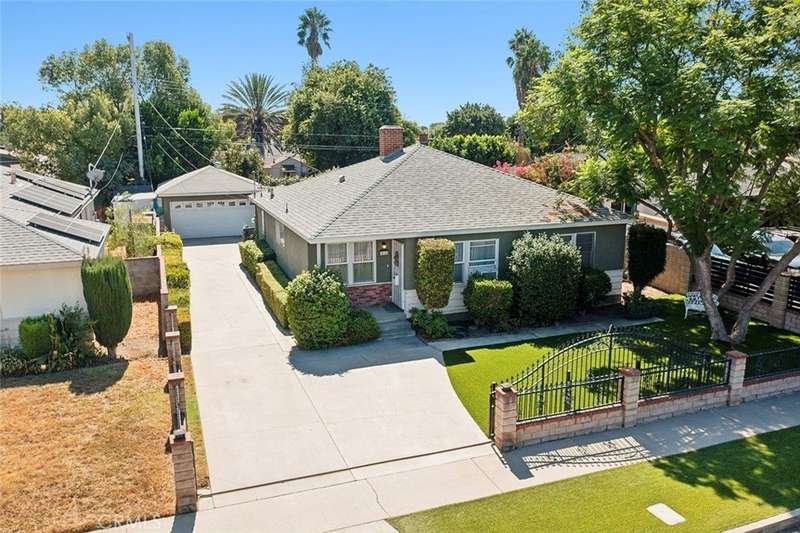 Welcome to this charming gated property nestled in a desirable pocket of Arleta! This well-maintained home features a beautifully landscaped turf yard, a recently replastered sparkling pool, and a long driveway leading to a detached garage—perfect for extra parking or potential ADU conversion. The newer roof adds peace of mind, while the covered patio offers a great space for outdoor entertaining. Inside, you’ll find warm wood flooring, ceiling fans throughout, and a cozy fireplace in the main living area. The third bedroom has been opened up to create a spacious second living or family room but can easily be converted back if desired. This home combines comfort, convenience, and curb appeal—don’t miss the opportunity to make it yours!