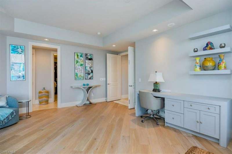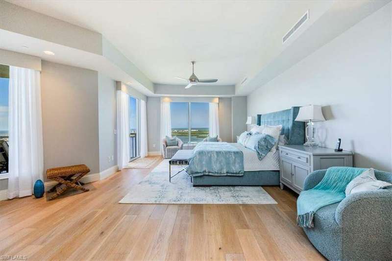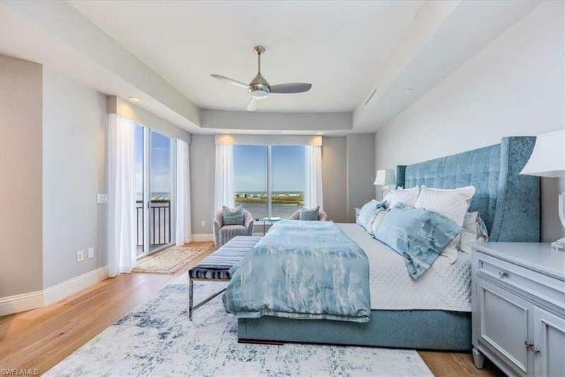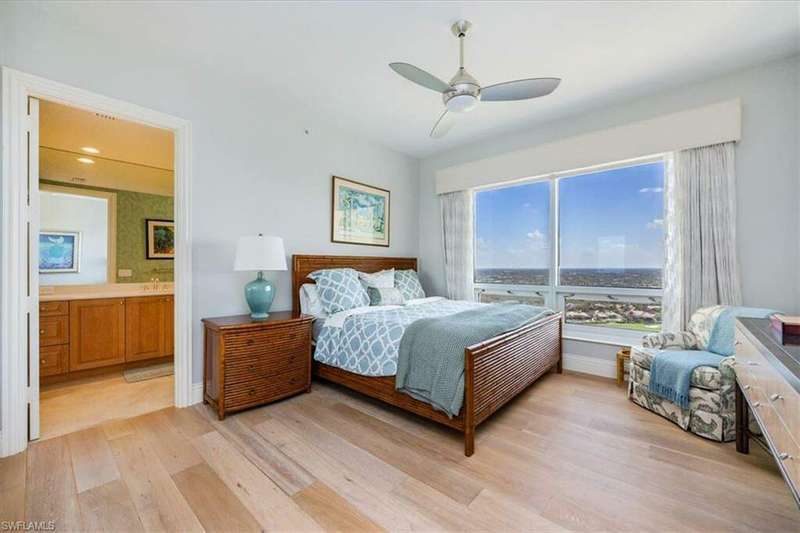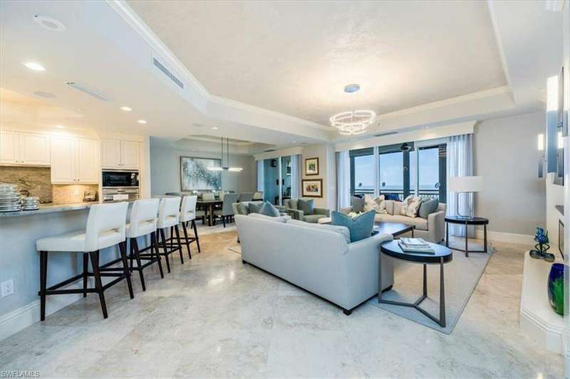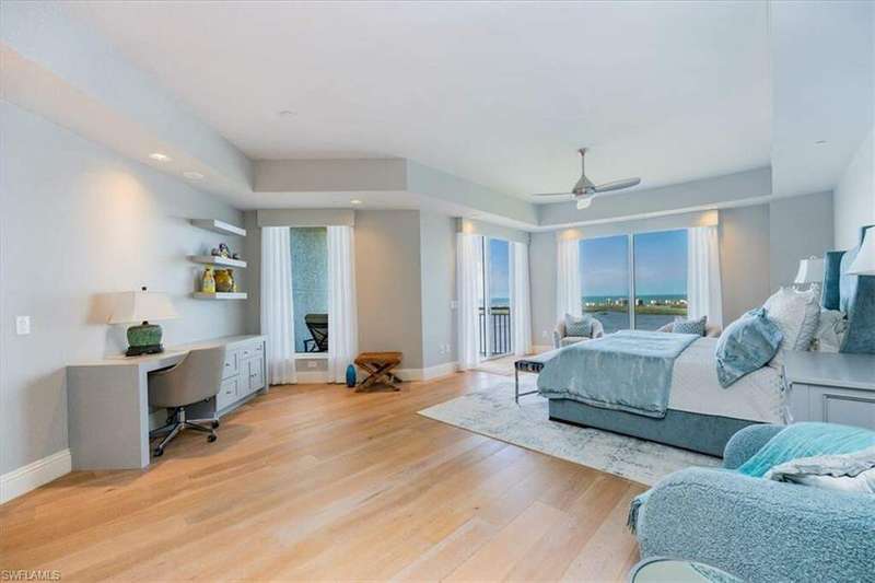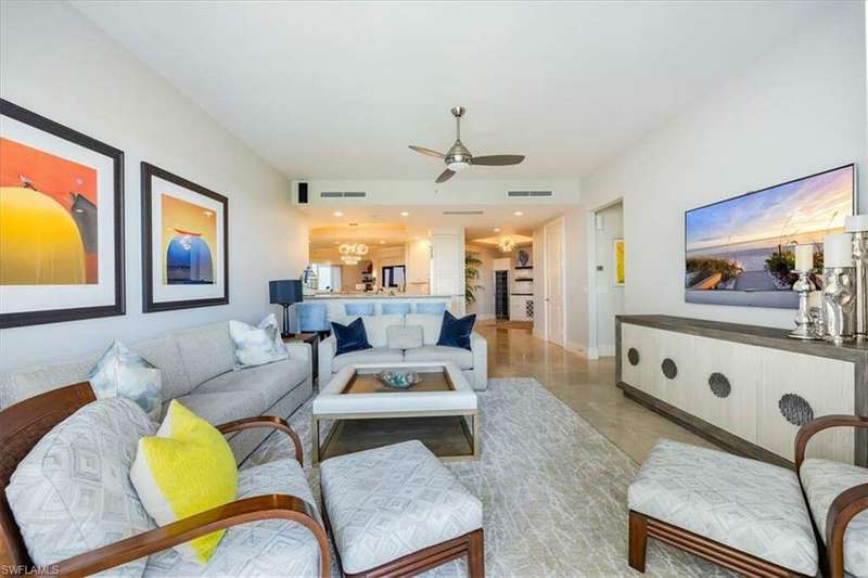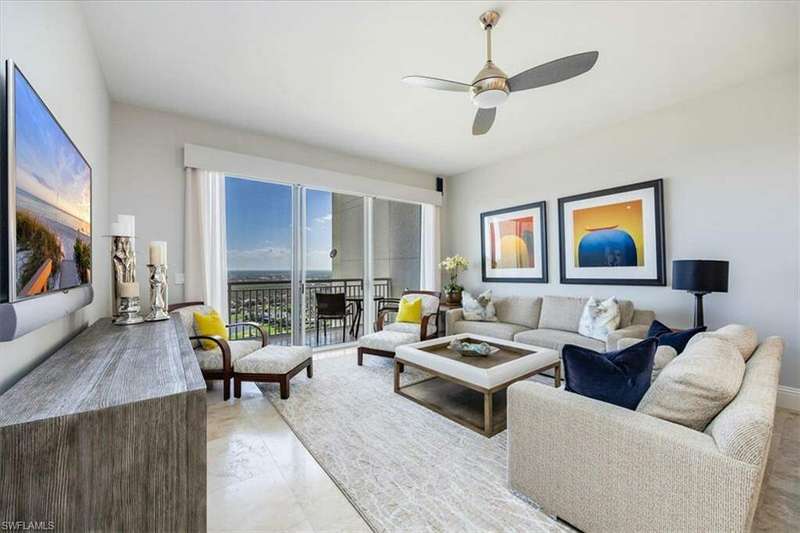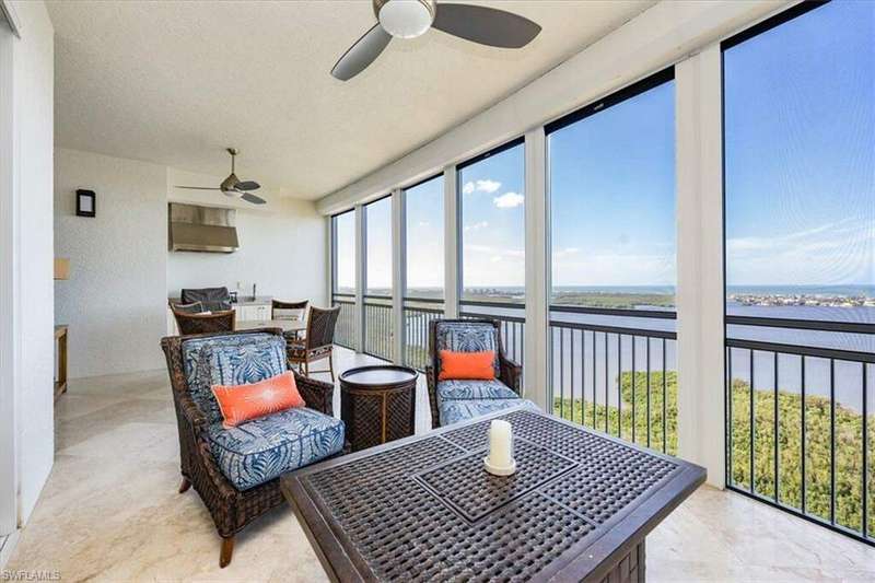 BACK ON THE MARKET AND NOW OFFERED AT THE BEST PRICE - Unit 2203 at Tavira, Bonita Bay is a stunning 22nd-floor sky home that captures the essence of luxury living in paradise. This rare opportunity combines breathtaking views, timeless elegance, and an unmatched value, making it one of the most distinguished residences available in Bonita Bay Enjoy Unforgettable sunset panoramas views from the screened lanai facing the Gulf The gourmet kitchen is equipped with a Wolf gas cooktop, electric oven, Sub-Zero refrigerator, and high-end granite countertops. The spacious layout includes separate living and family rooms, an enclosed terrace with views of Estero Bay, and dual custom closets in the master suite. Tavira offers exceptional amenities, including a full-time resident manager, social and card room, theater, fitness center, and a pool and spa. With two guest suites for visitors, this residence combines elegance and comfort in a beautiful setting.