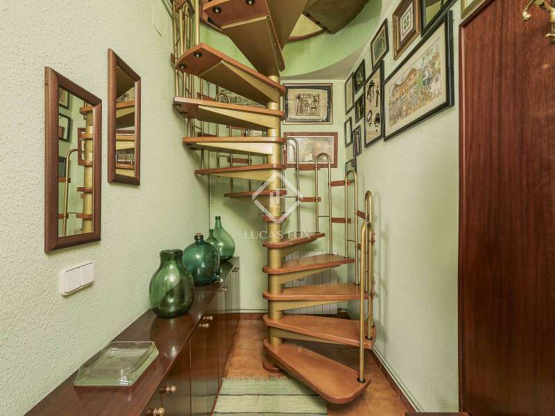Duplex penthouse with terrace next to Camp Nou Located on the quiet Begur street, just steps from Camp Nou and perfectly connected to the rest of the city, we present this duplex penthouse with a private terrace. A bright property on a very quiet street. Located on the fourth floor of a building with an elevator from 1979, this property offers a constructed area according to the plan of 153 m² (87 m² registered in the deed) and a pleasant 21 m² terrace facing east, ideal for enjoying the morning sun. The main floor comprises a 30 m² dining room living room with a fireplace and access to a 20 m² terrace, a separate kitchen , two bedrooms, and a full bathroom . The upper floor , not currently registered as a property, offers additional space with three bedrooms and a full bathroom . It also includes two storage rooms. It has gas heating, air conditioning and the possibility of obtaining two parking spaces on the same building (optional). La Finca is in good condition, with a pending building inspection (ITE) and recent improvements to the interior courtyards. Community fees are €113 per month. An ideal property for families as well as for those looking for a charming property with potential for appreciation in a well-established and quiet area of Barcelona, close to public transport, shops and amenities.