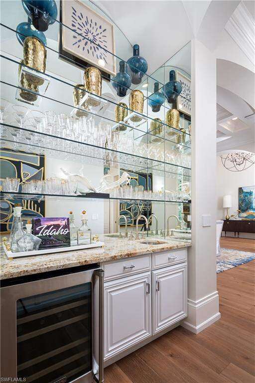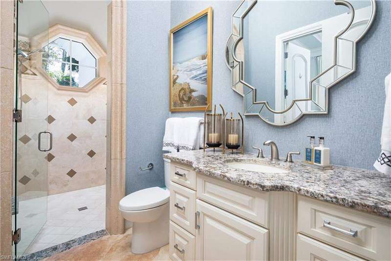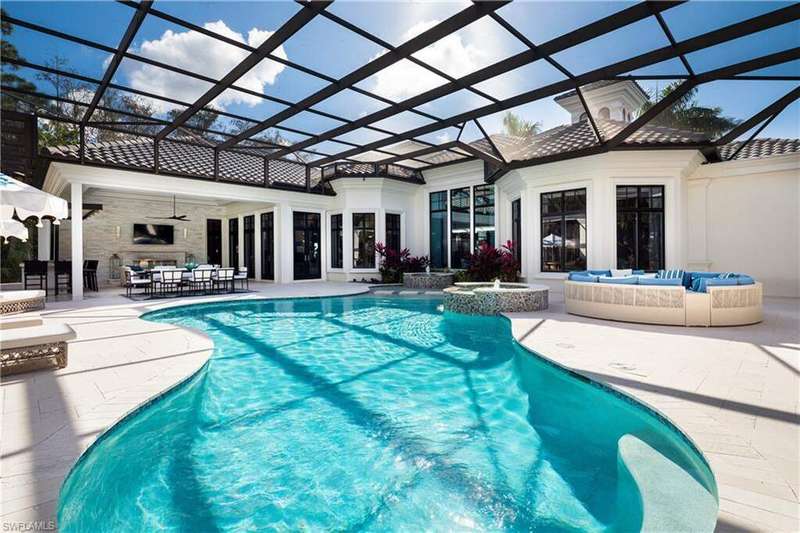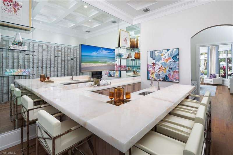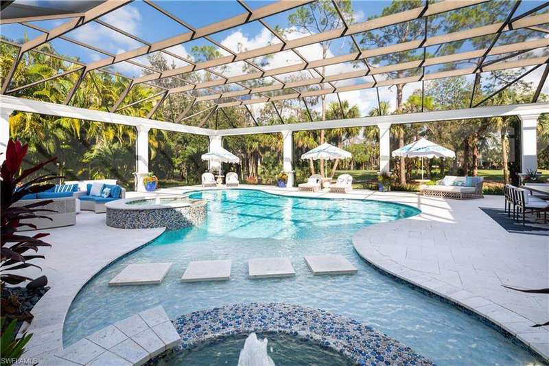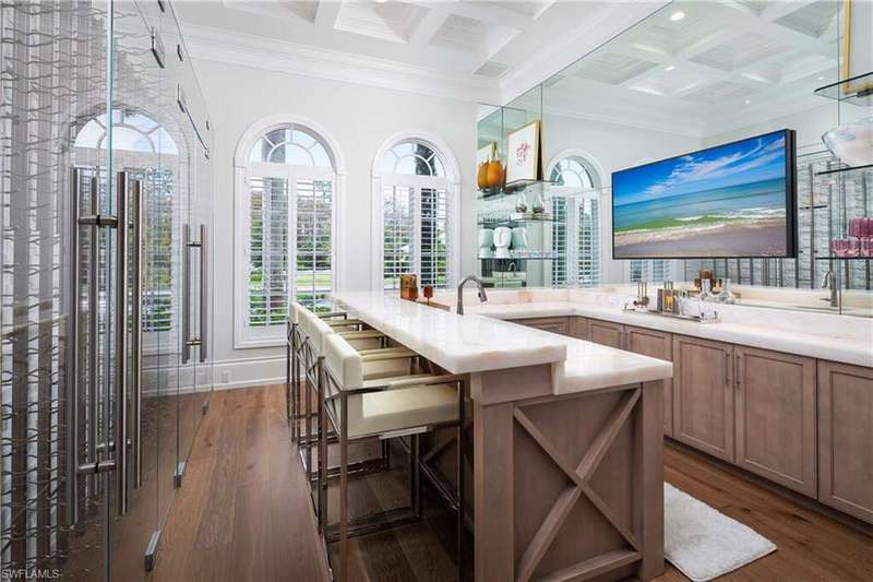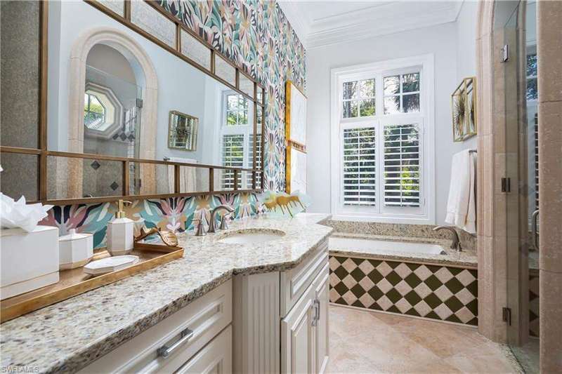 IMMEDIATE GOLF MEMBERSHIP AVAILABLE WITH THIS SALE (SKIP THE WAITLIST)! BUYER SAVES $225K ON GOLF INITIATION FEE BY TRANSFERRING SELLER'S GOLF MEMBERSHIP! Fully renovated, state-of-the-art estate situated in the highly sought-after Quail West community in Naples. This masterpiece sits on a nearly 1-acre lot with beautiful golf course views, a park-like setting & one of SWFL's finest outdoor entertainment areas with resort-style pool/spa, water features, state-of-the-art outdoor kitchen/bar & super screen picture window enclosure. Designed for ultimate enjoyment, the outdoor kitchen and bar offer seating for nine, featuring exquisite Taj Mahal granite, a grill, cooktop, burners, dishwasher, fridge, and a cocktail station. Inside, no detail has been overlooked, with European oak hardwood floors, & brand newly redesigned high-end furnishings & decor, custom designer wall coverings throughout, impressive distinctive light fixtures & luxurious custom draperies. Boasting 4,972 sq ft of living space, this home offers 4 spacious bedrooms, a spacious bar room with a 650 bottle wine wall (could also be converted back to a den), stunning formal dining room, a large laundry room with plenty of storage, and two 2.5-car garages with a motorized gate. Immaculately maintained, the property features hurricane impact windows, new hot water heaters, 3 new HVAC units (2022), 2 generators, a water filtration system, smart home automation with Lutron lighting, and a Sonos sound system. The chef's kitchen is a true culinary masterpiece, with pristine white cabinetry, high-end granite countertops, an oversized island, expansive walk-in pantry, and top-tier appliances, including a Thermador double oven, dual Viking dishwashers, Sub-Zero refrigerator drawers, Dacor microwave, and a Wolf gas cooktop with a hood. The primary suite serves as the perfect retreat, offering stunning views of the pool area and golf course. Its spa-like bathroom features dual vanities, a makeup vanity, a standalone soaking tub, and a luxurious frameless glass shower with a bench. Quail West is known for its world-class amenities, including two championship golf courses, a newly renovated 100,000 sq ft clubhouse, a Racquet Sports complex, an indoor lagoon-style Junior Olympic pool, a variety of dining options, a state-of-the-art fitness center, and a full-service salon and spa with a sauna. Just minutes from Barefoot Beach, Mercato, Waterside Shops, and Naples' iconic 5th Avenue, this prestigious community offers easy access to RSW and Naples airports.