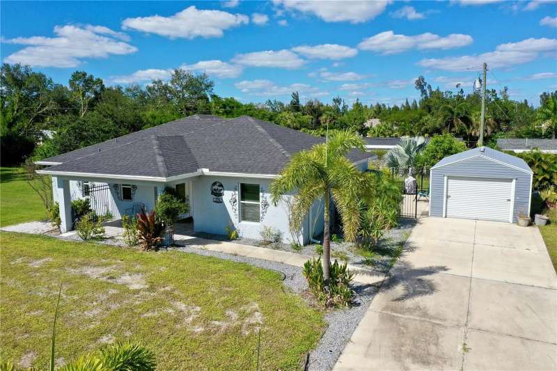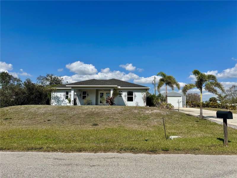Welcome to Your Punta Gorda Paradise! Experience the perfect blend of comfort, elegance, and Florida living in this beautifully designed 2-bedroom, 2-bathroom home spanning 1,400 square feet. Built in 2019 on a triple lot (18,021 sq ft total), this property offers the space, privacy, and peace of mind you’ve been searching for. Perched on high ground and untouched by the storms of 2024, this home delivers both security and serenity in one of Punta Gorda’s most sought-after settings. Step inside and be greeted by vaulted ceilings, stylish tile flooring throughout, and fixtures that exude modern sophistication. The open-concept layout creates a light and airy flow, enhanced by hurricane-impact windows that invite an abundance of natural light while keeping you safe and sound. The spacious primary suite is your personal retreat—featuring sliding doors that open to the oversized, screened-in lanai where you can unwind and enjoy the evening breeze. The luxurious ensuite bath includes a dual-entry walk-in shower with Dual showerheads for a spa-like experience. Entertain or relax in the expansive screened and covered lanai, complete with beautiful tile flooring and accessible through triple sliding glass doors. This seamless indoor-outdoor connection is perfect for gatherings, alfresco dining, or simply soaking up the Florida sunshine in total privacy. An irrigation system that can keep your lush landscaping in pristine condition year-round. Location couldn’t be better — just minutes from downtown Punta Gorda’s charming shops, fine dining, and waterfront activities. Travel is effortless with Punta Gorda Airport only 5 minutes away, and Southwest Florida International Airport (RSW) in Fort Myers just a 40-minute drive. Quick access to I-75 makes exploring all of Florida a breeze. Love the outdoors? The Darst Boat Ramp is right down the street, offering easy access to Charlotte Harbor and the Gulf of Mexico, and golf enthusiasts will enjoy a different course for every day of the week within 30 minutes. This home truly offers it all — luxury, safety, and an unbeatable location — making it one of the most desirable finds in Punta Gorda. Don’t miss the chance to make this remarkable property your forever home or seasonal retreat!