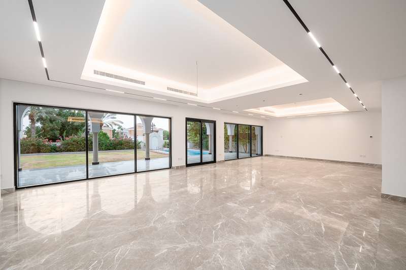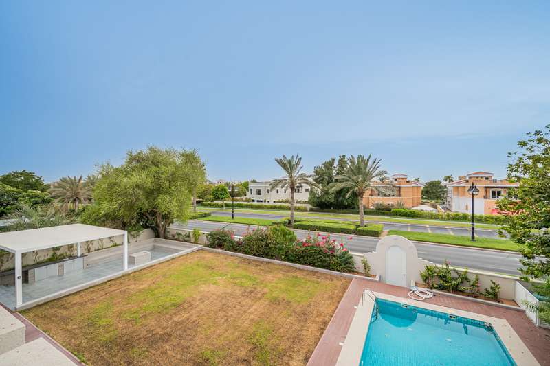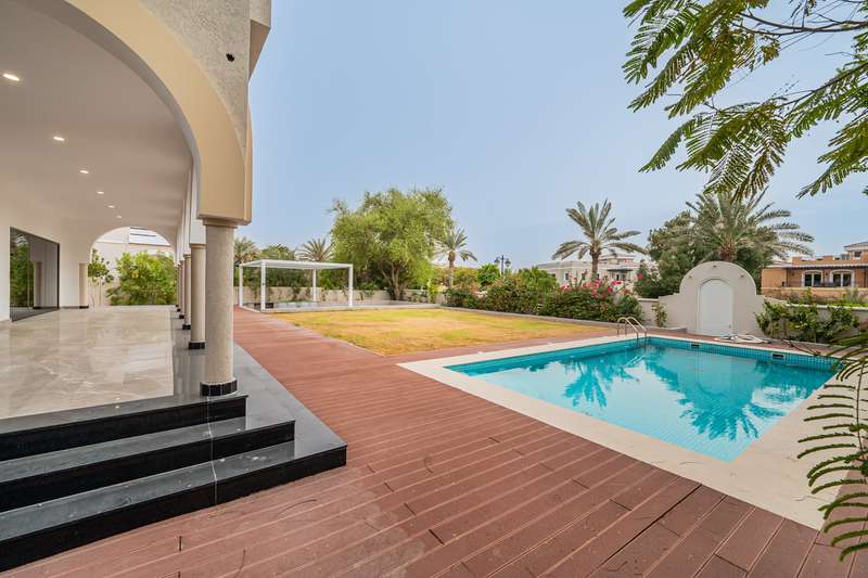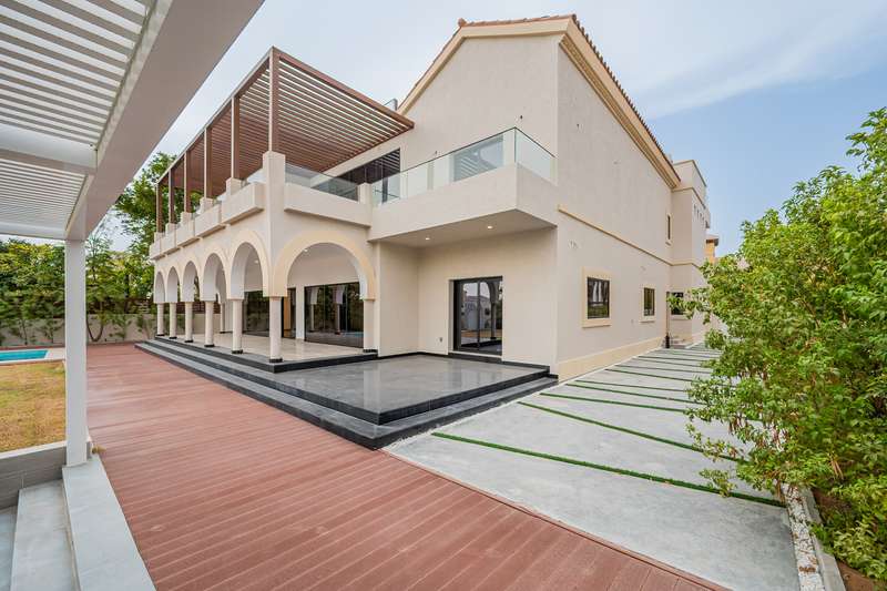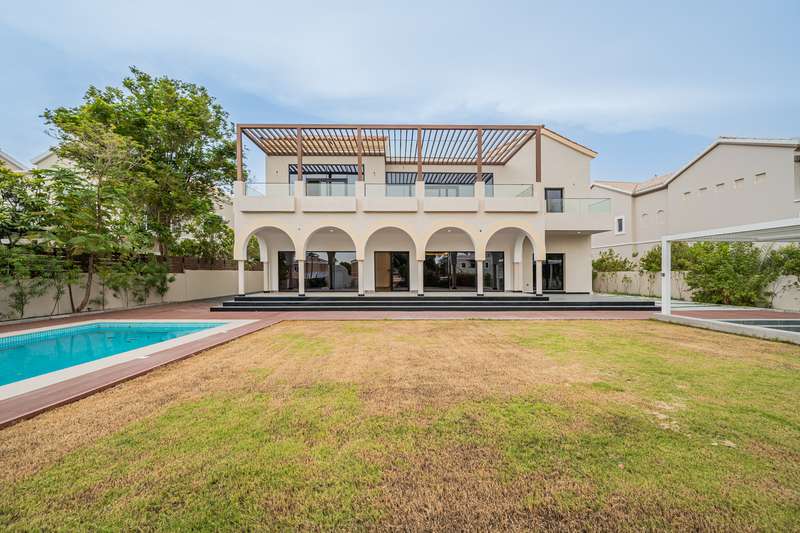 Better Homes is delighted to present this stunning, fully reimagined masterpiece, perfectly situated in a quiet and sought-after neighborhood within The Villa Community. This exceptional residence has been completely remodeled, thoughtfully extended, and tastefully upgraded, offering a perfect blend of modern elegance and functional design. Sitting proudly on a generous plot, it provides ample indoor and outdoor space for luxurious family living. Property Highlights: -6 Bedrooms + Maid’s Room -BUA: 9,086 sq. ft. | Plot: 13,205 sq. ft. -Fully remodeled with premium finishes throughout -Brand-new bathroom fit-outs and new air-conditioning units installed across the villa Ground Floor: -Expansive living area with floor-to-ceiling windows overlooking the garden -Elegant dining area connected to a brand-new modern kitchen with a large family sitting area -Two generously sized guest bedrooms, each with en-suite shower rooms First Floor: -Four exceptionally spacious bedrooms, all with en-suite shower rooms -Large family landing area — ideal as an entertainment lounge or second living space Outdoor Features: -Vast landscaped plot with a private swimming pool and a dedicated entertainment area -Separate maid’s room and laundry area Additional Details: Vacant on transfer — ready for immediate move-in Contact Dimple today to arrange your private viewing of this spectacular home and discover the unmatched lifestyle it offers.