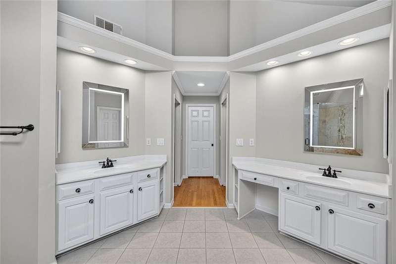 Stylishly remodeled, four-sided brick home in the conveniently located community of Whitehall. Only minutes to GA 400, Perimeter Center, Dunwoody Country Club and a variety of restaurants, parks, and medical services. Excellent schools and lower DeKalb County taxes. Built by John Wieland. Fabulous MAIN LEVEL features two story foyer, many new light fixtures, hardwood floors throughout, vaulted ceilings, and crown moldings. Remodeled kitchen with lots of storage and high-end KitchenAid, Bosch and Thermador appliances, oversized center island, gorgeous granite and new tile backsplash. Family Room features floor to ceiling stacked stone fireplace, and custom bookcases that span the length of the room. The main level is perfectly designed for entertaining! Enjoy a private, covered Trex deck for year-round entertainment featuring tongue-in-groove ceiling, fans, recessed lighting, and a linear gas fireplace with TV connections. UPSTAIRS with four spacious bedrooms, three full baths, hardwoods throughout and convenient laundry facilities. Primary Suite with beautiful bathroom and several spacious custom closets for incredible storage. Remodeled TERRACE LEVEL with home theater/media room, and bar/entertainment area. Fabulous guest suite with bedroom, sitting room and full bath. Additional laundry facilities and more storage. Terrific patio is perfect for grilling, dining, ping-pong and other games. You will love this beautifully remodeled home in this incredibly convenient location!!