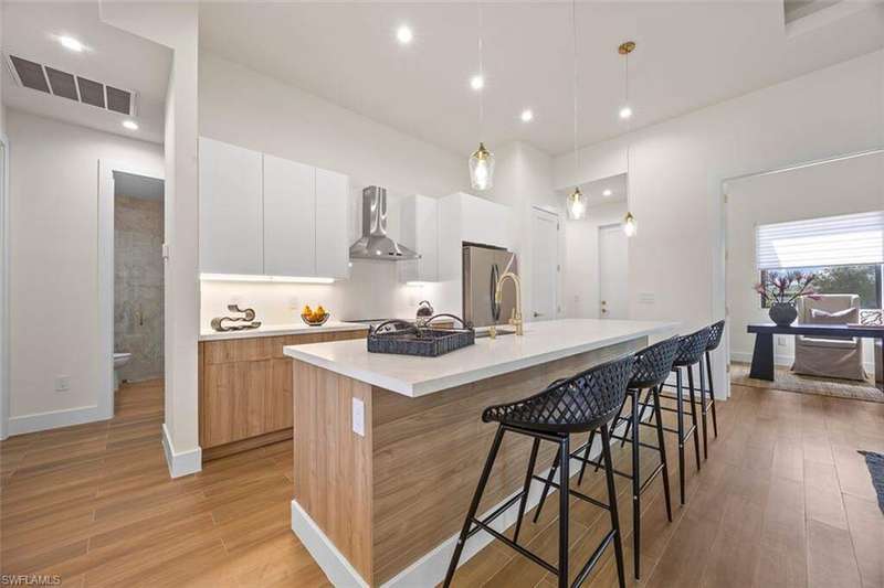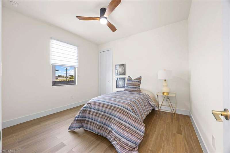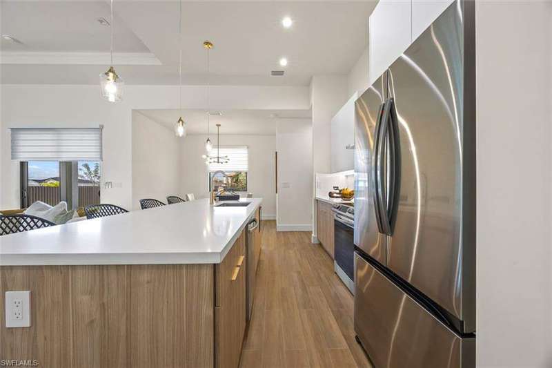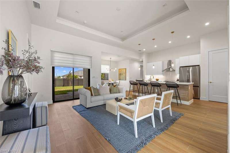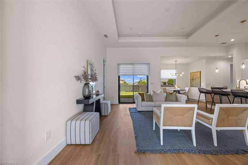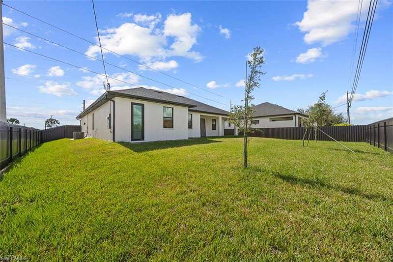 Welcome to 209 Kismet Parkway E, a brand-new single-family home located in the desirable North Cape Coral area. Built in 2025, this modern residence combines peace of mind, energy efficiency, and flexible living, making it perfect for today's Southwest Florida lifestyle. Step inside to discover 1,818 square feet of living space featuring an open-concept design, elegant tray ceilings, and tile flooring throughout. Impact-resistant windows and doors provide both storm protection and energy savings, while the thoughtful floor plan includes three bedrooms, three full bathrooms, and a versatile den that can serve as a home office, gym, or guest space. The chef-inspired kitchen is equipped with stainless steel appliances, a spacious island, and a walk-in pantry, offering plenty of room for meal preparation and entertaining. The primary suite features dual sinks, a walk-in shower, and custom-built closet cabinetry for added convenience. Enjoy Florida living at its finest on the covered lanai, surrounded by a brand-new fenced backyard that provides privacy and the perfect setup for outdoor dining or the addition of a future pool. The home also includes an attached two-car garage with a paved driveway, a split-bedroom layout for enhanced privacy, and a .23-acre lot with no HOA fees or restrictions. Located just minutes from shopping, dining, and popular local attractions such as the Four Mile Cove Ecological Preserve, the Cape Coral Farmers Market, and the Cape Coral Historical Museum, this property offers a peaceful residential setting with convenient access to everything Cape Coral has to offer. Experience the best of new construction in Cape Coral with this beautifully designed, move-in-ready home that blends quality craftsmanship, thoughtful details, and the relaxed Florida lifestyle you've been searching for.
