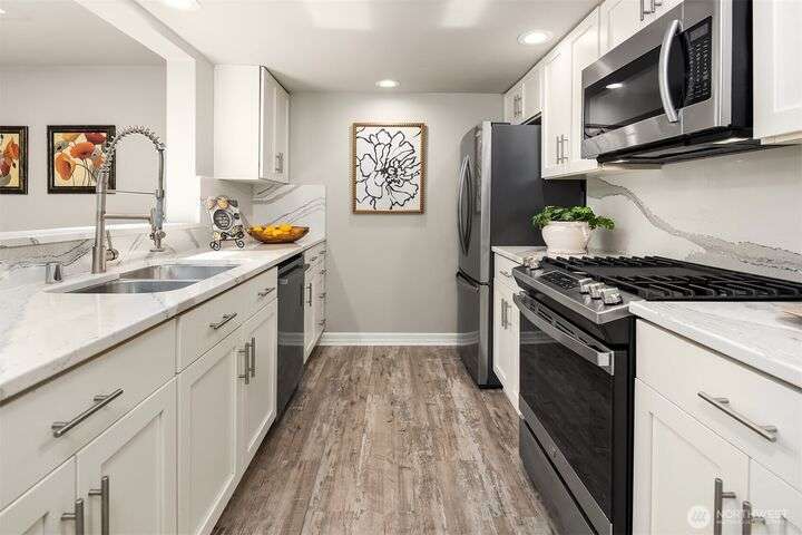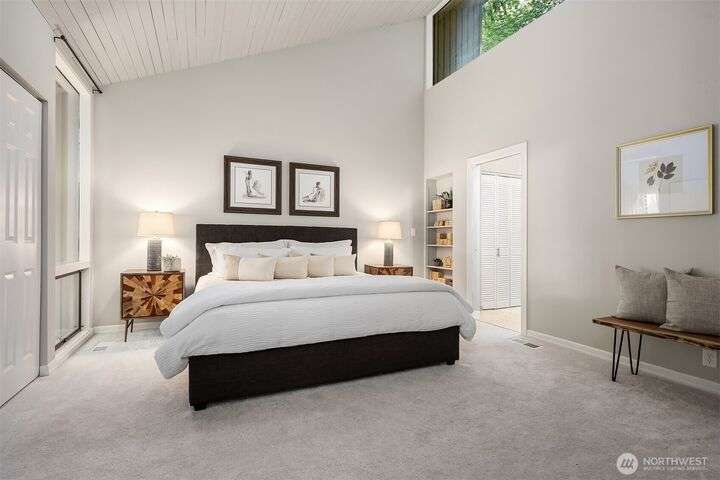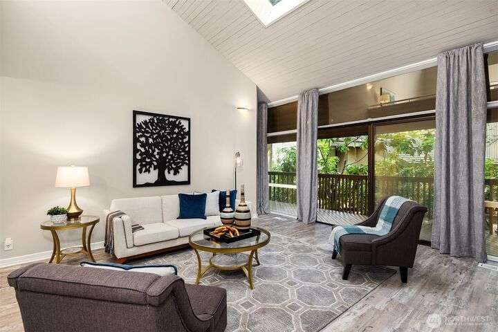 Rarely available, this updated townhome is located in the coveted Sahalee Golf & CC community featuring a spectacular PGA championship course & 24/7 gated security. This NW contemporary home is nestled amongst the trees, yet high ceilings, multiple skylights & walls of windows keep it light & bright year round. The easy living, main level features a spacious living room w/ gas fireplace, a completely updated kitchen with large dining nook & coffee bar, 2 bedrooms, 2 baths & formal dining room. A second primary suite / flex space with an adjacent bath & walk out deck are located in the private upper loft. Wrap around decks provide ample outdoor entertaining space. Top ranked schools & easy access for commutes & Redmond light rail.