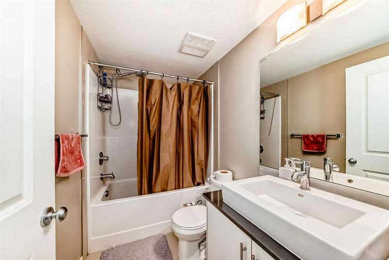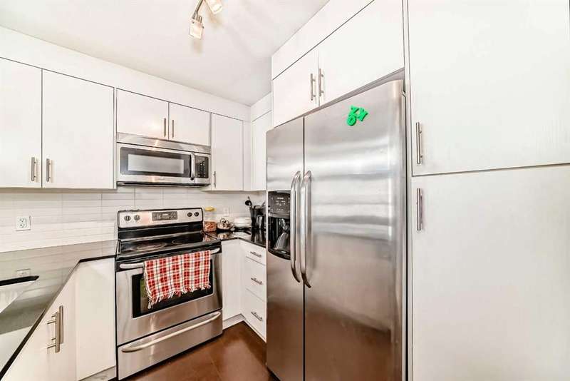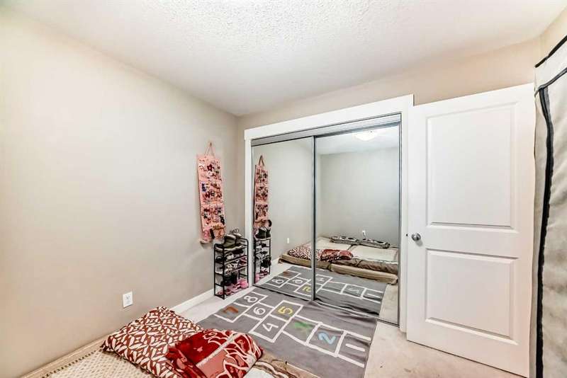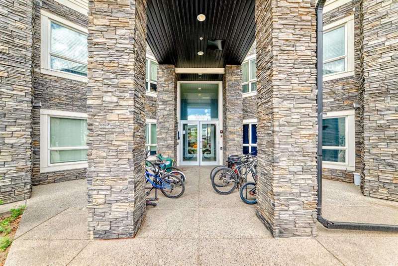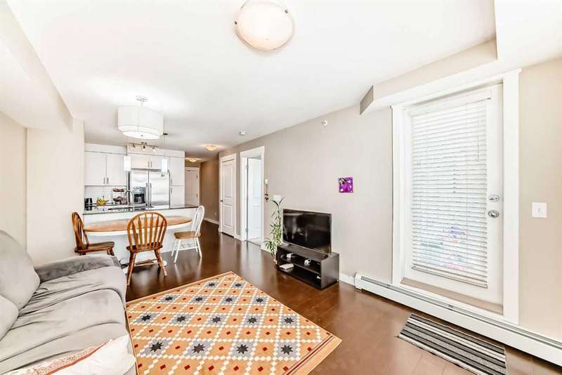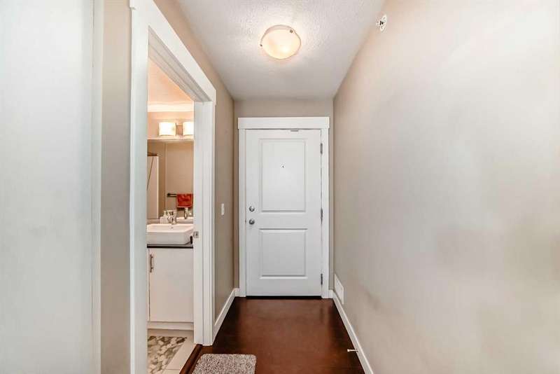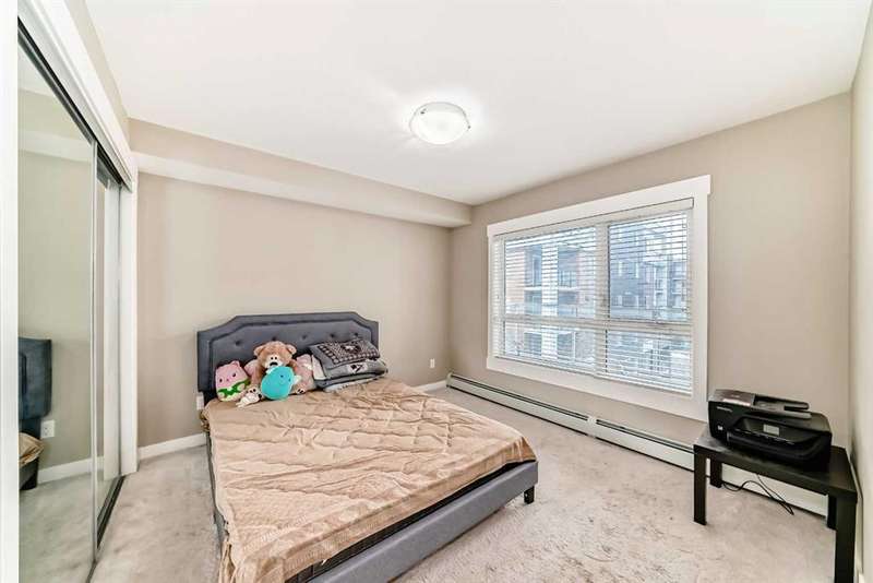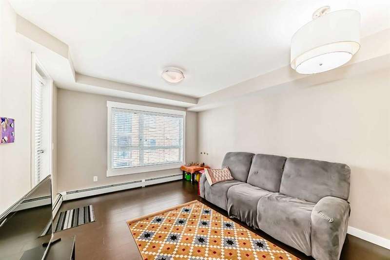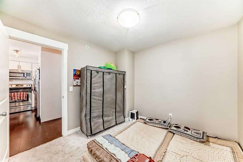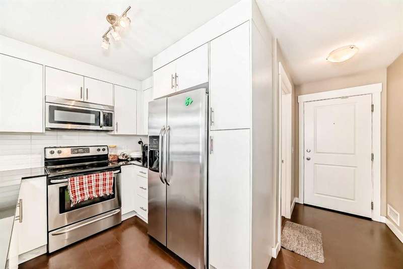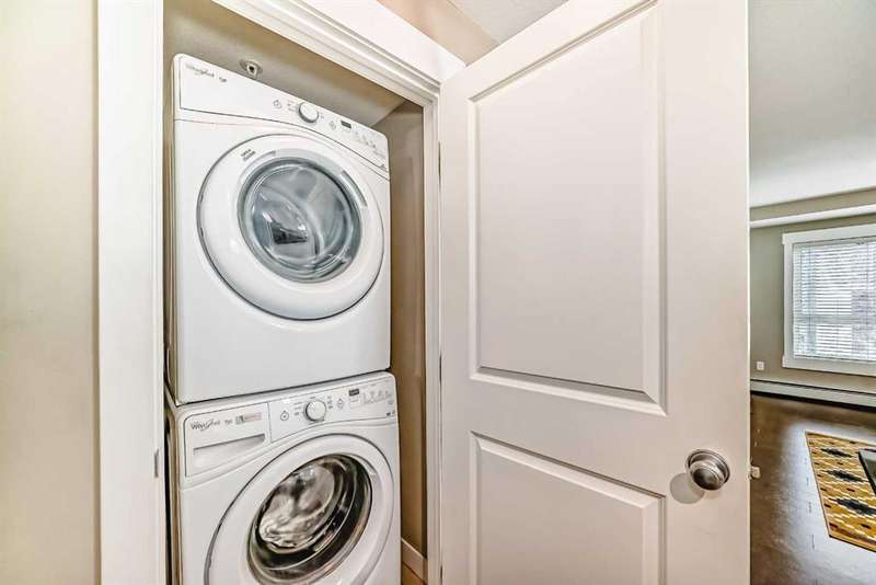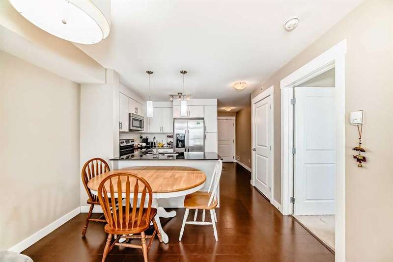 Welcome to this beautifully maintained 2-bedroom, 1-bathroom unit located on the top floor, offering peace, privacy, and plenty of natural light. Step into the stylish kitchen featuring ceiling-height white cabinetry (no dusting required!), sleek black quartz countertops, stainless steel appliances, and ample cupboard space. The extended counter provides a convenient spot for additional seating—perfect for entertaining or casual dining. The main living area boasts sound-dampening cork flooring, combining comfort with style. The bright and open living room flows seamlessly onto a spacious balcony complete with a gas hookup for your BBQ—an ideal setting to relax and enjoy warm summer evenings. This unit includes a titled underground parking stall and an assigned storage unit for added convenience. Located in the vibrant and family-friendly community of Skyview, the building is just steps from Prairie Sky School (K-9), parks, playgrounds, restaurants, and local businesses. With easy access to Metis Trail and Stoney Trail, commuting is a breeze. Don’t miss out on this top-floor treasure in a prime location!