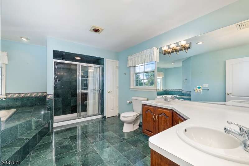 Welcome to a home that blends timeless elegance and everyday comfort, designed for entertaining and comfort. With 4 bedrooms and 3.5 baths, this residence offers space, style , and warmth. Step into the grand marble foyer, where a sparkling chandelier with lift sets the tone for the beauty that awaits. Sunlight streams through the custom Palladian window in the formal Living Room, highlighting rich Oak floors that continue into the formal Dining Room, perfect for hosting holiday gatherings or quiet dinners. The heart if the home is the expansive kitchen with separate dining area. Silestone counters, extensive cabinetry and not one, but two oversized islands with seating create the perfect blend of function and hospitality. French doors invite you to the composite deck with Pergola and Sunbrella cover, overlooking the private, level backyard with brick patio and storage shed, Just steps away, the Family Room beckons with a cozy gas fireplace. Upstairs the Primary Suite is a serene getaway. With Cathedral ceilings, an office/nursery provides flexibility. A luxurious Marble bath complete the retreat. 3 additional Bedrooms w/ double closets share an oversized full bath with dual vanities. The finished basement with high ceilings expands your living space even further and encompasses a Full Bath. Envision a home theater, exercise room or game room, the possibilities are endless. This is more than a house, its where elegance meets comfort, a welcoming, long lasting home!