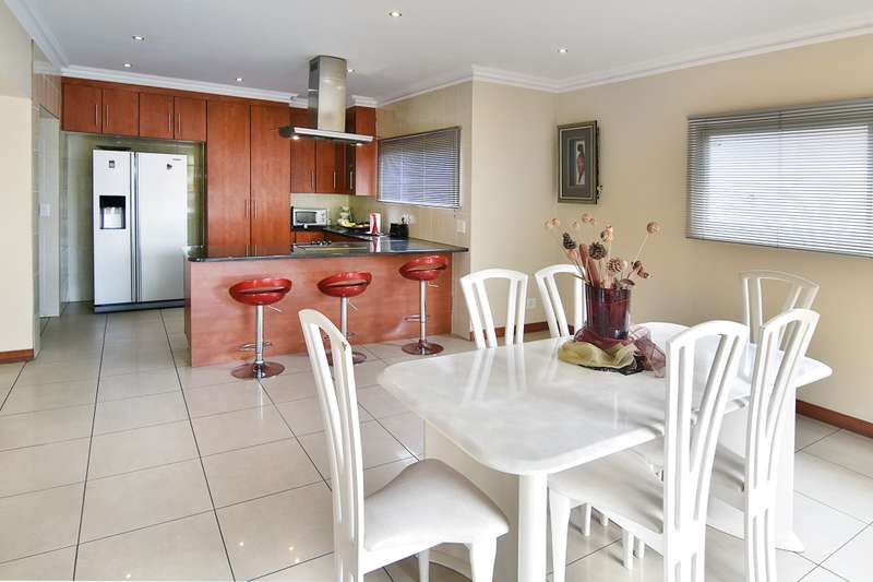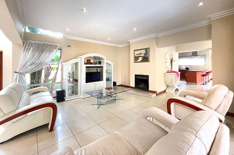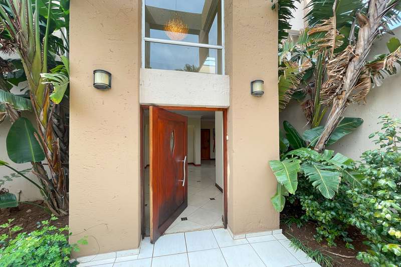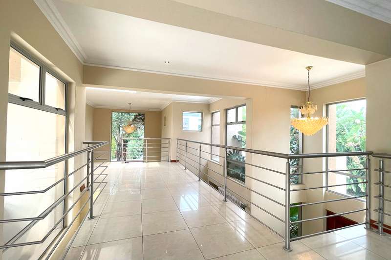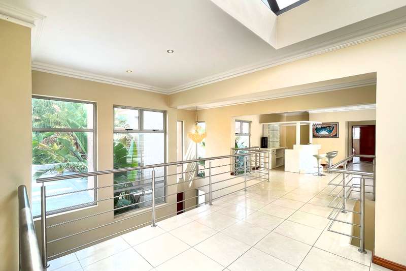 This architectural masterpiece is built for family living. Enter through a pivot front door into a large entrance hall with an atrium looking onto the entertainment area. Lots of glass, skylights and double volume add to the space and light of the home. Downstairs you have comfortable living areas. The lounge is fitted with a fireplace. The kitchen is open plan and well fitted and leads onto a dining area opening onto a covered patio ideal for entertainment. There is a separate scullery. Further on you have two en suite bedrooms downstairs. You also have an additional guest loo. Upstairs you have a large landing which is ideal for a TV lounge area. You have an additional three bedrooms upstairs. One bedroom is en-suite whilst the other two bedrooms share a family bathroom. The bedrooms open onto a large balcony with beautiful views. All bedrooms have b.i.c and are tiled. The home has a pool set in an established garden as well as an additional gazebo area with a built-in braai. There is also a separate en suite helper’s quarters as well as double automated garages that lead into the house. Lots of extra of street secure parking. The home is pet friendly. Savanna Hills Estate is a well-established secure estate situated close to the Blue Hills shopping center as well as highway exits. The estate enjoys 24 hr. gated security and is fiber ready. Amenities include safe walking areas, swimming pools, clubhouse, tennis courts as well as safe kids play areas. Disclaimer: Whilst every care has been taken in the preparation of this listing we cannot be held responsible for any errors/ omissions that may occur.