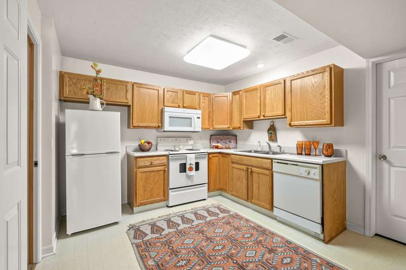 This stunning 5-Bedroom, 3-Bath Walkout Ranch with Dual Kitchens & Premium Updates is ideal for separate living quarters or hosting guests. Recently updated with a tear off roof (9/25) & furnace this past year, this home offers peace of mind for years to come. The main floor boasts an open-concept layout with soaring cathedral ceilings & a cozy wood-burning fireplace in the great room. The kitchen offers ample prep & storage space, a snack bar, brand new LVP flooring & microwave! Sliders from the dining room lead to a sunny 3-season room, offering a relaxing spot to overlook the private, wooded backyard. The primary suite features a spacious walk-in closet & a double vanity in its private bath. 2 additional bedrooms, a full bath, & convenient main-floor laundry round out this level. The walkout level offers even more living space with a second full kitchen, dining area & daylight windows that fill the expansive family room with natural light. 2 bedrooms, a full bath, laundry hookup & ample storage make this level incredibly versatile. Plus, enjoy the added benefit of being located in a Kalamazoo Promise-eligible district, providing access to free college tuition! Don't miss the opportunity to make this well maintained, one-owner-home that is clearly move-in ready, yours!