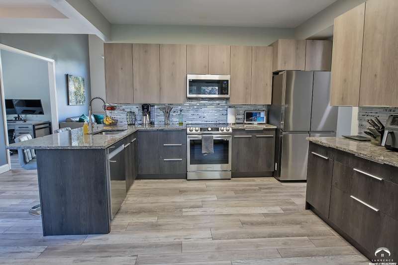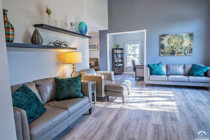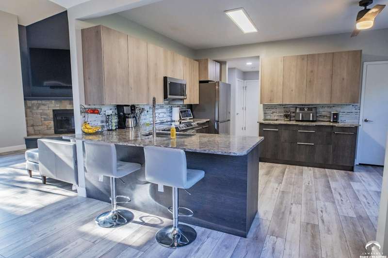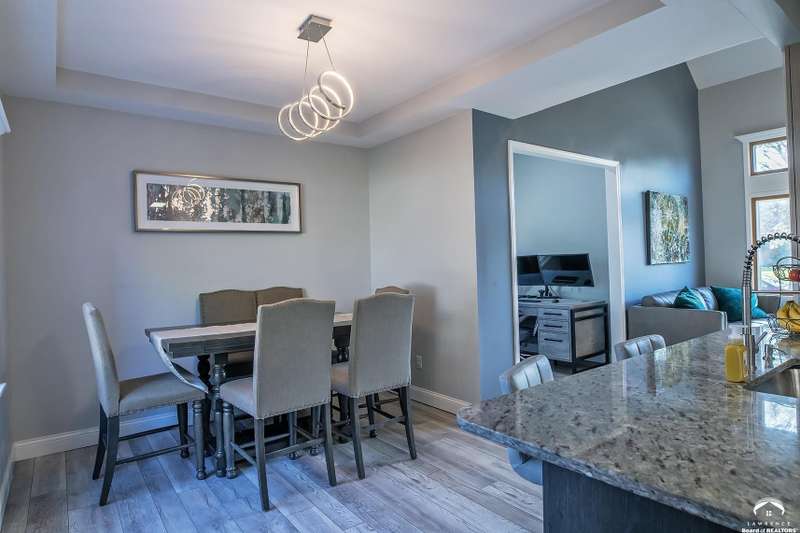 New, great price at $449,900! This thoughtfully designed four-bedroom, four-bathroom home offers exceptional comfort, flexible living space, and refined finishes. Tucked along a quiet cul-de-sac in northwest Lawrence, it features a layout that suits a variety of lifestyles. Warm luxury vinyl plank flooring flows throughout the main level, complementing open living spaces and a versatile office nook—perfect for working remotely or unwinding with a good book. The kitchen combines function and style with granite countertops, a spacious center island, and sleek cabinetry that anchors the heart of the home. The main-level primary suite provides privacy and convenience, while three additional upstairs bedrooms offer flexibility for a variety of needs. A finished basement expands the living area with a large family room that’s ready for movie nights, games, or gatherings. Outside, the landscaped yard offers a peaceful setting for enjoying time outdoors. With updated pricing and a welcoming layout, this northwest Lawrence home is ready for its next owner. Welcome home!