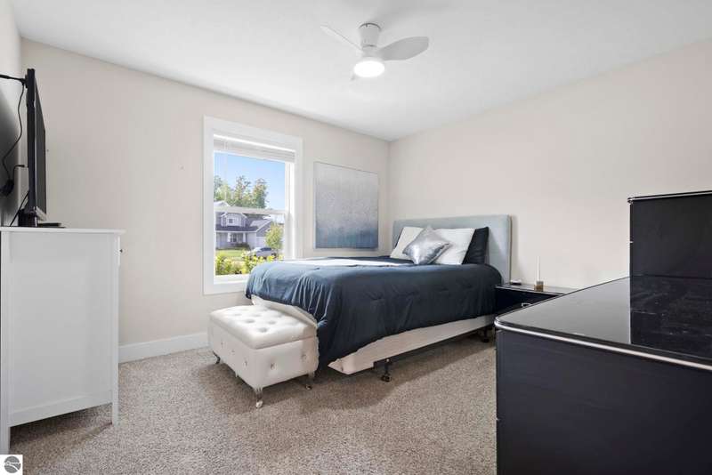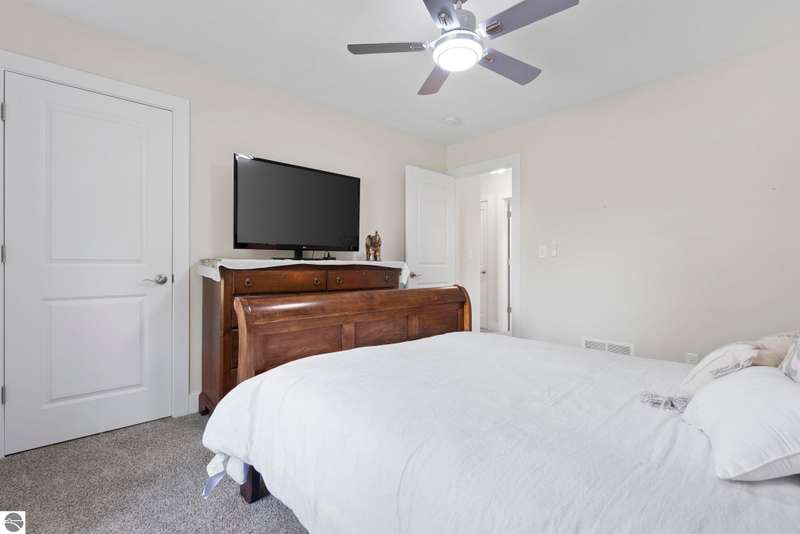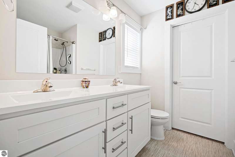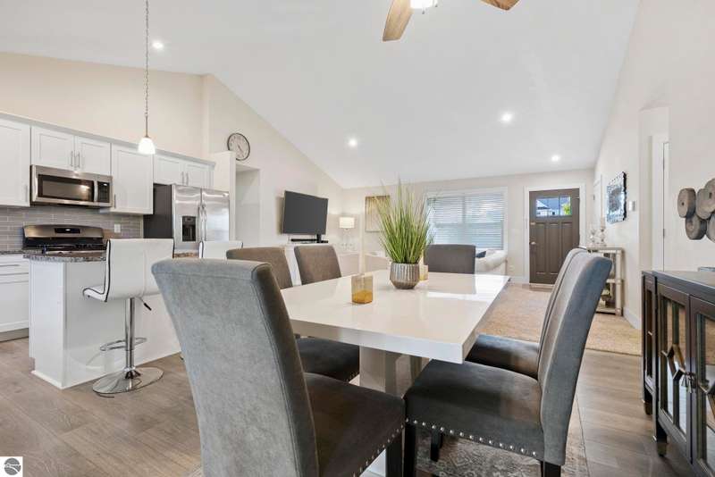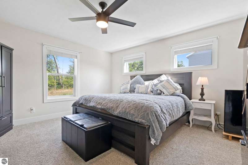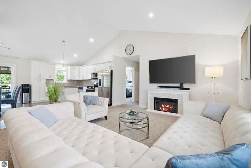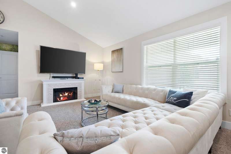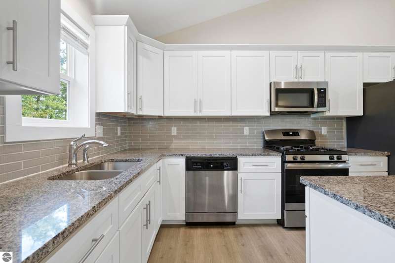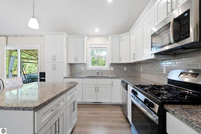 Nestled within the desirable Sessions Woods community, this charming ranch-style residence blends modern design with timeless comfort. Built in 2019 by Maplewood Homes, the property showcases high-quality craftsmanship, thoughtful details, and energy-efficient features, including 2' x 6' walls, spray foam insulation, and a superior foundation. Offering three bedrooms and two full baths across 1,437 square feet of single-level living space, the home presents a layout that feels both open and inviting. The great room, anchored by soaring vaulted ceilings, flows seamlessly into the kitchen and dining areas, creating an ideal setting for gatherings or relaxed daily living. A calming palette of whites, grays, and neutrals sets the tone for the interior, enhanced by laminate flooring and abundant natural light from insulated low-emissivity windows. The kitchen is highlighted, with white maple shaker cabinets, gleaming granite countertops, a spacious center island, and GE stainless steel appliances, including a gas range. The thoughtful split-bedroom design places the master suite opposite the two additional bedrooms, affording privacy and comfort. In the master suite, you will find a walk-in closet and a private bath featuring a stand-up shower. Both secondary bedrooms are generously sized, making them well-suited for family, guests, or a home office. Beyond the interiors, the home offers excellent outdoor living with a large front porch, backyard deck, firepit, and a landscaped yard equipped with underground sprinklers. The three-car attached garage provides ample parking and storage, while the full daylight basement offers future finishing potential. Resting on a 0.42-acre cul-de-sac lot with a 90-foot frontage, the property balances neighborhood convenience with a sense of privacy. Exterior finishes of stone and vinyl siding, along with a composition roof, ensure lasting durability. There's even a Zen water feature that greets guests with a serene welcome.