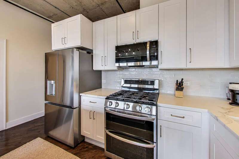 Absolutely stunning duplex-up penthouse with upgrades throughout and the best views of the city! This 3 bed/3 bath unit also includes 2 parking spaces & 2 private outdoor spaces including a rooftop deck. The main level has a brand new kitchen that has been upgraded from top to bottom with all new cabinetry, appliances, light fixtures, and gorgeous new countertops. The open floor plan flows straight from the kitchen into an enormous, extra wide living/dining space with a private outdoor terrace perfect for grilling! The full bath on the main level has new vanity, mirror, light fixtures, and toilet. One full bedroom with brand new built out closet, light fixture, and custom made door along with a full laundry room & extra large closet complete the first level of this home. Upstairs are two full bedrooms with two full bathrooms, an extra large recently built out storage closet, and huge private rooftop deck with incredible views of the skyline. The primary bedroom comfortably fits a king size bed with nightstands & dresser and the attached ensuite bathroom has been fully renovated to provide a 5 star spa-like experience. The second bedroom on the top level is very spacious as well and is perfect for a nursery, home office, or guest suite with it's own full bathroom. Overall, this is a one-of-a-kind home that has been carefully crafted to fit even the most discerning buyer's needs! Perfectly located on a quiet side street, yet right around the corner from the best shopping, eating, and nightlife Chicago has to offer in the West Loop!