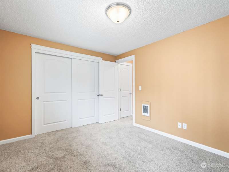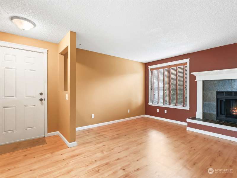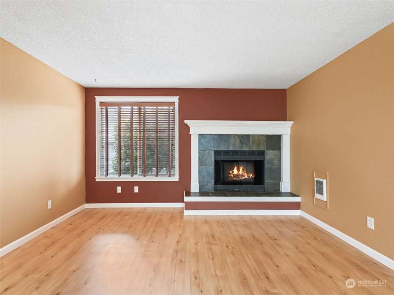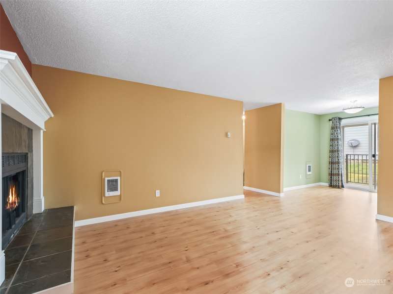 Newly priced! Includes a 1-year Fidelity National Home Warranty. Cute & cozy ground floor, 2 bed, 1.5 bath condo with nearby detached 1-car garage in a gated community. Laminate flooring, new carpet, a brick raised hearth wood burning fireplace and wall heaters. Living rm. is open to the dining area, which has a slider to the railed composite deck with a storage closet. Kitchen has granite counters, a stainless steel sink, dishwasher, range, and built-in micro-wave range hood. Hall has 2 storage closets and a laundry closet. Hall and bedrooms newly carpeted. Primary bedroom w/ ensuite half-bath, and two double closets. 2nd bedroom also has double closets. HOA dues include garbage. Central location, near 5 parks, shopping, and Clark College.