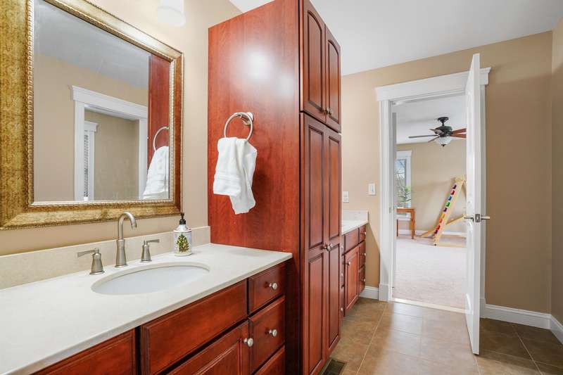 Step into timeless elegance with this stunning four-bedroom, four-bath home, offering a unique and thoughtfully designed floor plan perfect for modern living. From the moment you enter, you’ll be captivated by the two-story family room, featuring a grand fireplace and expansive windows that bathe the space in natural light. The first-floor primary suite is a true retreat, boasting generous space, luxurious finishes, and a spa-like bath. A second ensuite bedroom on the first floor adds flexibility, making it perfect for guests or multigenerational living. The formal dining room exudes sophistication, while the sunroom provides a tranquil space to relax and unwind. Upstairs, you’ll find two spacious bedrooms connected by a Jack and Jill bath, along with a versatile loft area ideal for a home office, playroom, or additional lounge space. Throughout the home, extensive custom millwork and coffered ceilings create a sense of refined craftsmanship. The unfinished walkout lower level is already prepped for a bath, offering endless possibilities for an in-law suite, entertainment area, or additional living space. A third bay garage discreetly located around the back provides ideal storage for lawn equipment, recreational vehicles, or extra toys. This one-of-a-kind home is designed for those who appreciate exceptional quality, custom details, and a spacious yet functional layout. Showings begin at open house 10/18/2025