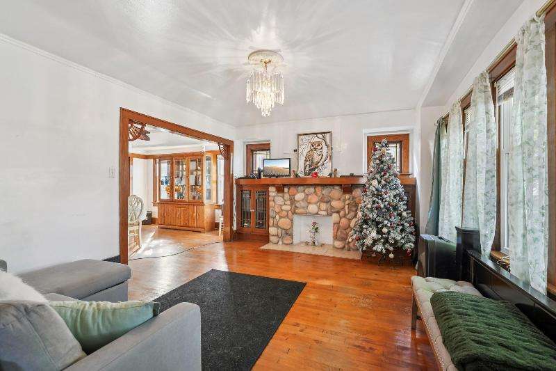 Discover this stunning classic bungalow at 1226 S 28th St, brimming with charm and spacious living. Step through the enclosed front porch into a bright living room boasting hardwood floors, a coved ceiling, and a decorative stone fireplace. The dining room, adorned with crown molding and a built-in buffet, flows into a sunlit kitchen. The main floor offers two generous bedrooms, a full bath, and a convenient mudroom. Upstairs, find two additional bedrooms and a half bath, perfect for a primary suite, office, or media room. Outside, enjoy a fully fenced front and back yard, a 2.5-car garage, and parking for two more vehicles. Ideally located just one block from 27th, National, and Greenfield!
