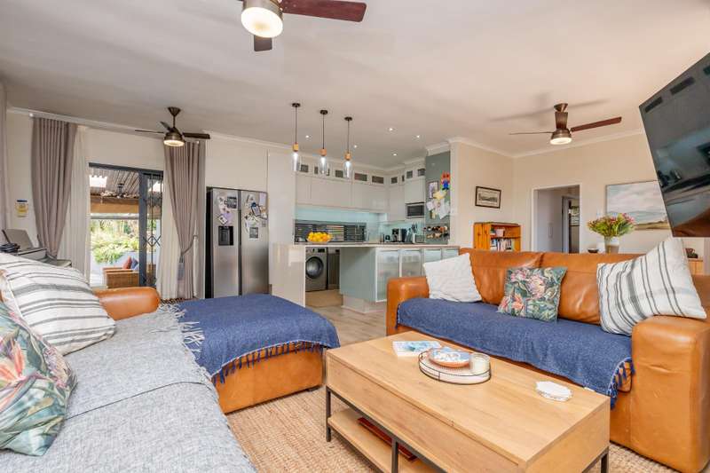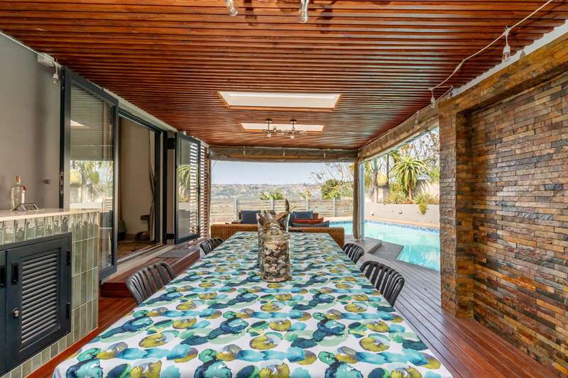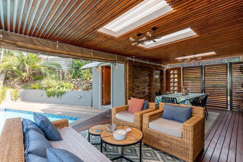 This stunning 3-bedroom modern home boasts sleek design and luxurious features, perfect for those seeking a contemporary lifestyle. The spacious interior includes a beautifully appointed entertainment area, ideal for hosting gatherings and parties, and a refreshing pool that provides the perfect spot to unwind. The home's three bedrooms are complemented by a modern bathroom and separate toilet, ensuring comfort and convenience. The property also features a charming 1-bedroom granny flat, providing additional living space for family members or guests. One of the standout features of this property is its distant sea views, offering breathtaking vistas that add to the home's allure. The property is also equipped with eco-friendly features, including water harvesting, water is pumped directly to the house when needed and a solar system, comprising an 8kw inverter and 25kw battery storage. The home's modern amenities include a Caesar stone kitchen, new laminate flooring, and piped fridge. The kitchen is also equipped with an undercounter reverse osmosis water filter, ensuring clean drinking water at all times. Aluminum windows and doors throughout the property add a touch of modernity, while a high-end security system provides peace of mind for residents. Additional features include a small cottage and ample parking space for up to 5 cars. With its perfect blend of modern design, eco-friendliness, and luxurious features, this property is an ideal haven for those seeking a comfortable and sustainable lifestyle.