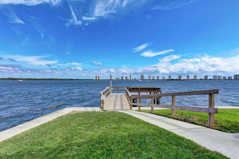 Charming home with stunning view of the Intracoastal Waterway in the heart of North Palm Beach. This home has an open living space with beautiful views. Shutters complete. Situated close to shops, dining and entertainment. This 55+ Community has a Social Clubhouse, Heated Pool, BBQ Grills and Fishing Dock. 20 minutes from PBI, 5 minutes from the beach. ROOF 2022, NEW ELEVATORS, NEW RAILINGS! One photo of the living / dining has been virtually staged.