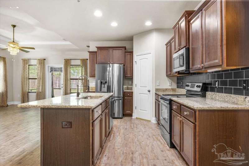 ** SELLER CREDIT! ** SELLER IS OFFERING ASSISTANCE TO GO TOWARDS CLOSING COSTS, AN INTEREST RATE BUY-DOWN, OR THE PURCHASE PRICE! Welcome Home! This four-bedroom // two-bathroom brick residence sits close to a cul-de-sac on an easy to maintain lot in Ashley Plantation. The subdivision has sidewalks, underground utilities, a clubhouse, a playground with sports fields, and is in the new Wallace Lake K-8 school district. The open floorplan features lots of storage space and a two-car garage. The kitchen boasts granite countertops, stainless steel appliances, new backsplash, a center island with bar seating, and a pantry. There is a formal dining area and a breakfast nook. Master suite has a tray ceiling, a ceiling fan, a large walk-in closet, a double vanity, a water closet, a separate tile shower, and a garden tub with new tile. Family room has a tray ceiling with crown molding, a ceiling fan, and leads out to the newly screened-in back porch. Luxury Vinyl Plank flooring is in main living areas, while carpet is in the bedrooms. There is also a foyer, coat and linen closets, and a laundry room. Plenty of natural light is throughout the home, as well as new light fixtures! Exterior features include a fire pit, a sprinkler system, a spacious covered front porch, new privacy fencing, as well as a new separate fenced in area that is perfect for pets, new sod and fresh landscaping, and new gutters. Call today for your private showing!