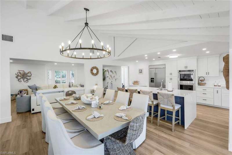 A Rare Waterfront Gem on Sanibel Island This beautifully renovated 6-bedroom + den, 5-bath Gulf access canal home is perfectly situated on an expansive cul-de-sac lot in the highly desirable Shell Harbor community on Sanibel Island's East End. With 217 feet of water frontage, a private dock with lift, and deeded beach access, this home offers the ultimate Florida lifestyle. First Floor Highlights: Spacious primary suite with direct access to the pool and a luxurious en-suite bath Separate guest suite with private entry, ideal for visitors or multigenerational living Open-concept kitchen, dining, and family room with large windows boasting stunning views of the pool, canal, and outdoor living areas Dedicated office/den, perfect for working from home Pool bath for convenient access from the outdoor entertaining space Second Floor Features: Four generously sized guest bedrooms and two full bathrooms Large laundry and storage room, ideal for extended stays or family living Outdoor Living: Expansive outdoor entertaining area with pool and water views Boat dock with water and electric and a new lift - just one bridge to the open bay Sunset views from your peaceful cul-de-sac location Location, Location, Location: Short stroll or bike ride to the Shell Harbor private beach access with parking Quick access to the Causeway, island bike paths, shops, and restaurants