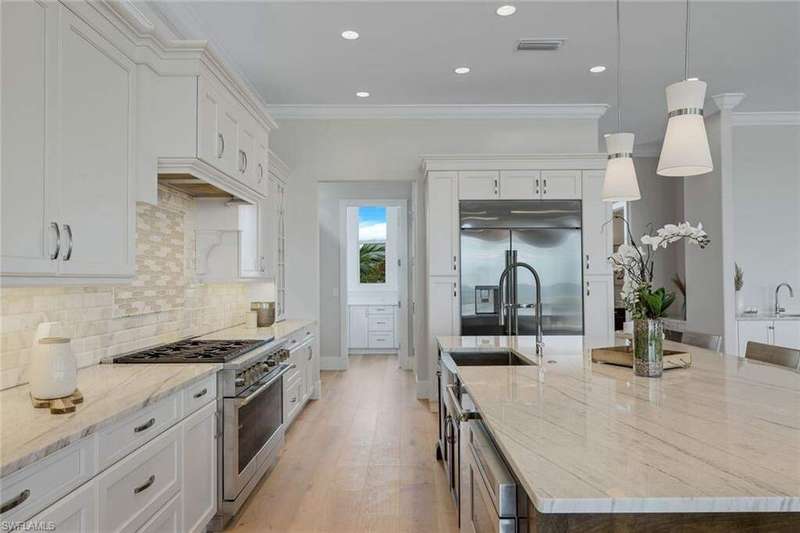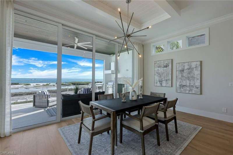 OFFERED FURNISHED! Enjoy the Gulf & Beach front lifestyle to its fullest with this newly remastered (ALAIR Custom Homes 2023/2024) coastal living, custom pool home. Originally built in 2015 by Gary W. Lau Inc. Custom Homes, here's the lifestyle you've always wanted & deserved with the scenic, stunning, unobstructed, shimmering views of the Gulf of Mexico right out your back door. From the moment you step into the foyer & take your private elevator or the custom-built staircase to the other levels, you know this is a special place for sharing with family & friends. As the home unfolds before you, your immediate focus may take you to the awe-inspiring expanded views of the Gulf of Mexico, its powdery-white sandy beach or the contrasting multi-shade turquoise gulf waters. Perhaps your eyes capture the spacious living room with coastal crisp decor', natural sunlight, custom architectural ceilings, & the sprawling open floor plan. Then again, you may divert to the well-appointed kitchen that any chef would envy with new SS appliances, propane gas stove & oven, new tailored cabinetry, quartzite counter tops, glass-tiled backsplash, walk-in pantry & custom wood & tile flooring. Then again, it may direct you to the elevated pool & spa, the outdoor kitchen & lanai complete with gas fireplace & circular stairway to ground level where an outdoor shower, gas fire pit, direct access to the beach & gulf waters await you. Whichever, you'll be captivated & know, there is much more yet to see. Each of the 4 bedrooms are ensuites & there is a separate powder room as well. Custom closets, day-bar on both the 2nd & 3rd levels add to purposeful function & convenience. The list goes on, western-facing 3rd floor open balcony, 6-car garage, generator, electric hurricane shutters on the west-side of the home, impact resistant windows & doors, heavy gauge metal roof, new A/C, Security System, 350-gallon propane tank, new pool equipment & concrete block construction. The lot extends approximately 740' to the high-water mark on a select stretch of beach. The adjacent "buffer-zone" & designated bird sanctuary is home to Osprey, Eagles, Spoonbills & Pelicans along with a variety of other species that are indigenous to Florida to come & go as they please. The home has a set-back position from public beach goers, offering the utmost in privacy. Sunsets, as well as the distant lights of Naples, Bonita Beach & Sanibel on clear nights, add to the ambiance & will sweep you into your own oasis.