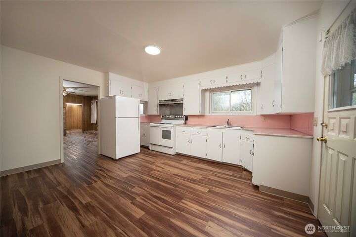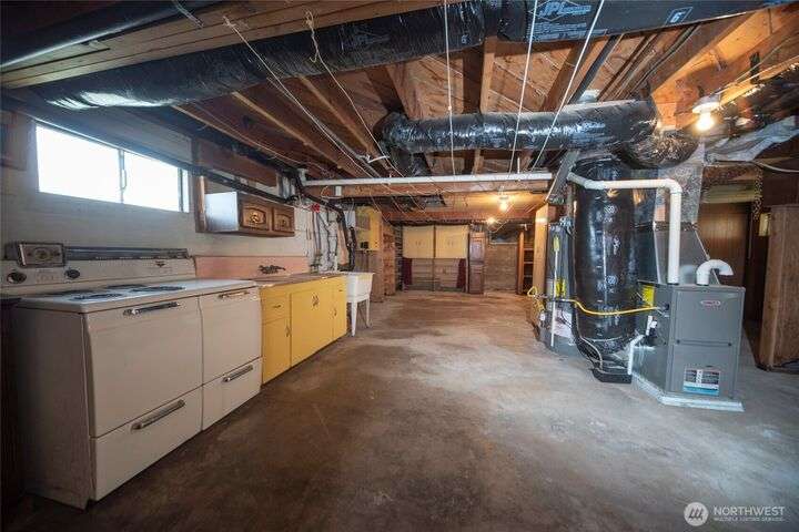 Charm and character is what you will find in this 1960's retro-style home. The well loved custom built home has had one-owner. Special attention to detail is obvious as you observe the ornate wood work adding character to the kitchen. The 3 bed/ two bath house has lots of storage and built in cabinets through out. The house has been freshly painted, new flooring in the living space. New furnace & hot water heater. The large unfinished basement creates additional sq ft. With room for many possibilities. Unique opportunity is available with this property that sits on two parcels, almost an acre on the edge of town. Plenty of room to build another dwelling or be creative and utilize the numerous out buildings. Bring your vision & get to work!