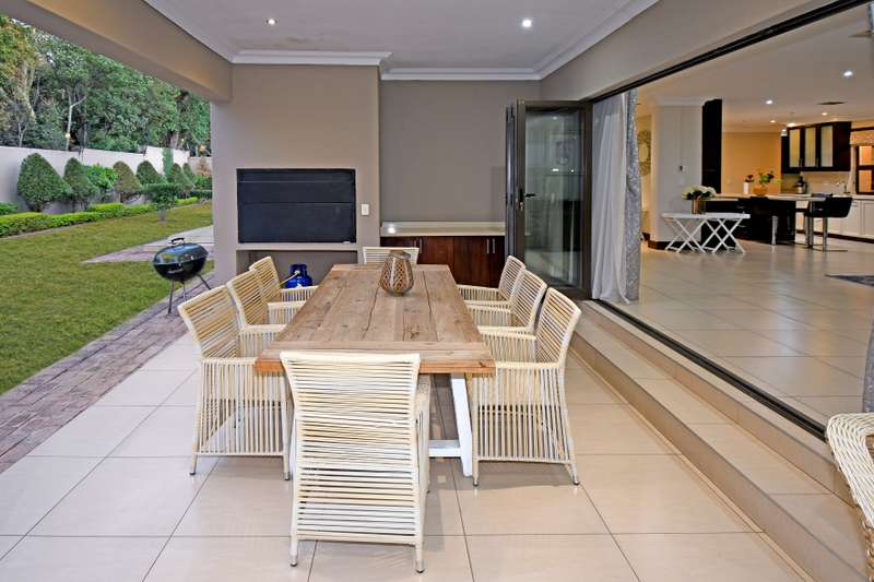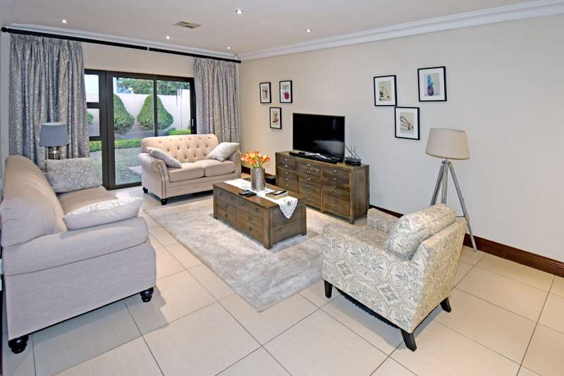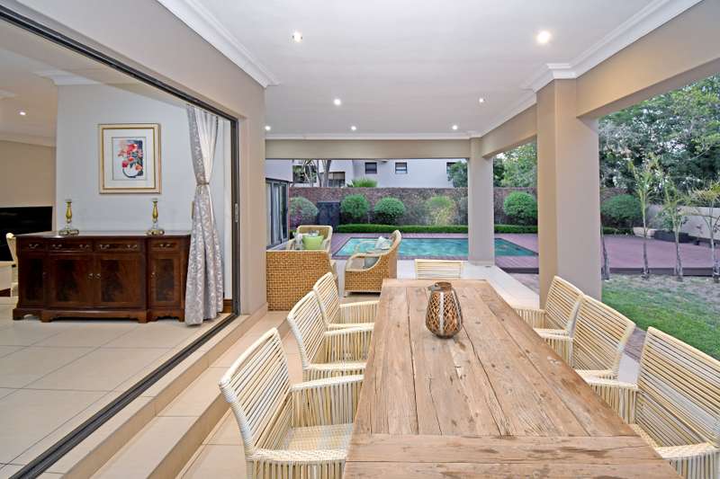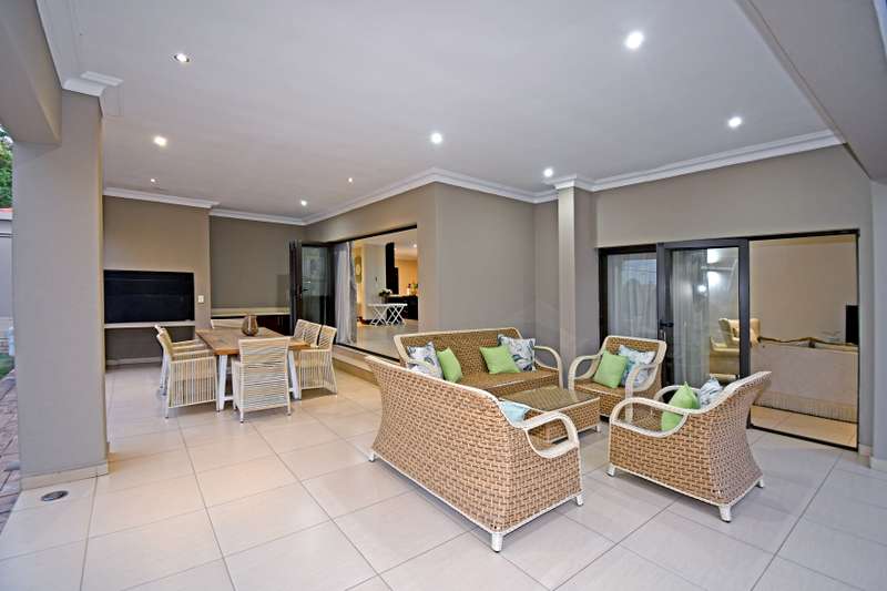 Situated in an upmarket and secure estate on Mandeville road, this cluster home is the epitome of space, security and luxury. Nestled in such a peaceful setting this home is a must see for those who are looking for estate living but are still looking for generous space and privacy. Expansive receptions that lead onto a decked pool and large garden; welcoming entrance hall, formal lounge and an open plan dining room with a double sided gas fireplace and a family / TV room leading onto the patio with a built in braai. Also a separate study and a pyjama lounge / gaming / play room. Large eat-in kitchen with a centre island and a gas stove, walk-in pantry and a large scullery / laundry. Accommodation consists of 5 bedroom suites (including a separate guest suite) with Air-condition and access to the garden. Spacious staff suite with own kitchen. Double garage and ample secure parking for guests (+-6cars). Motivated Seller based overseas will look at all market related offers!