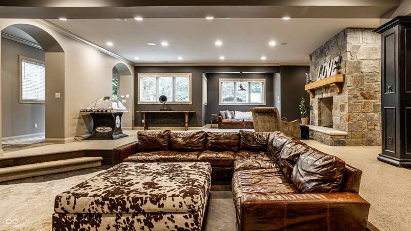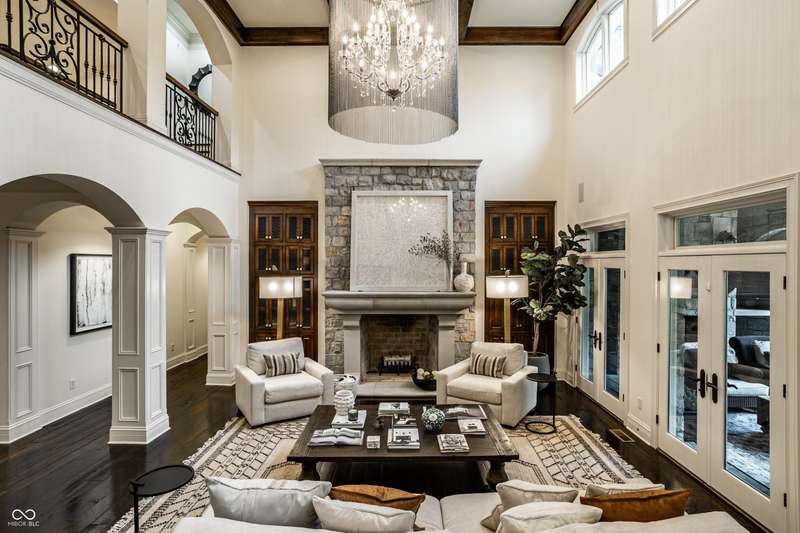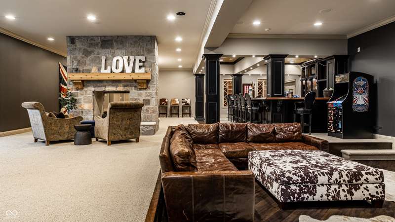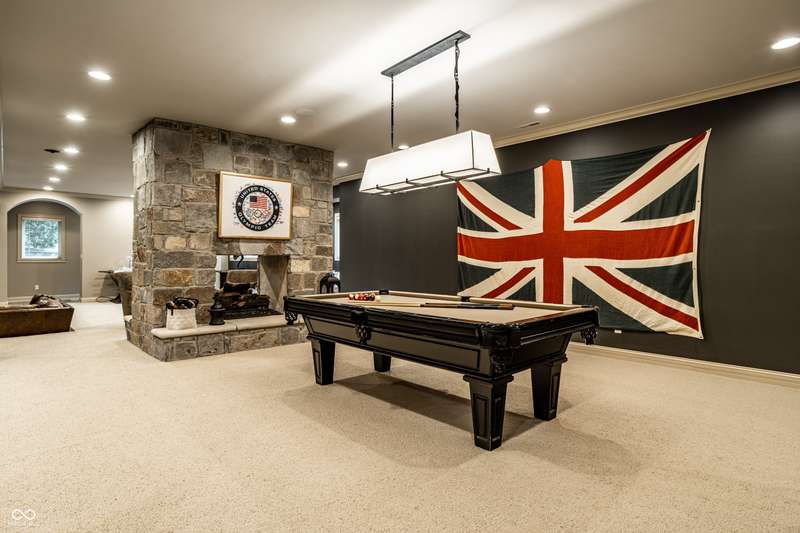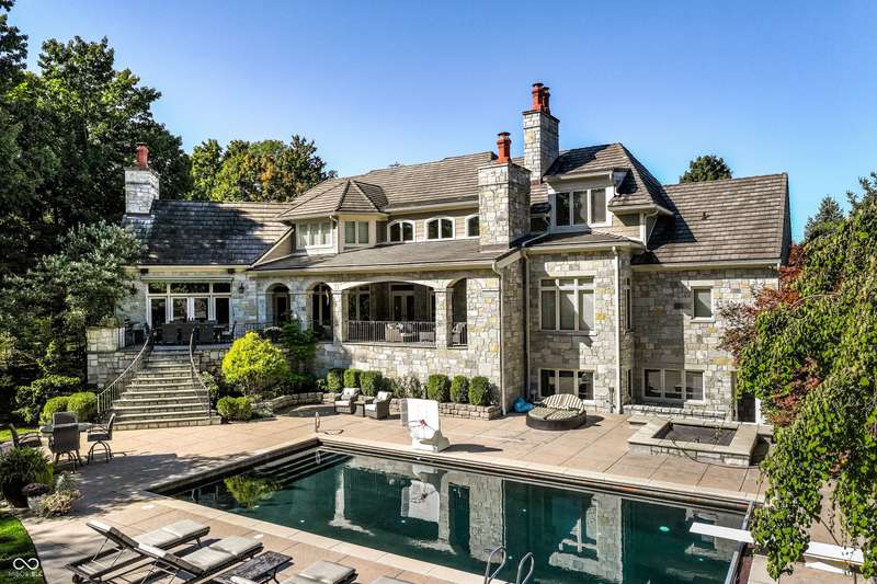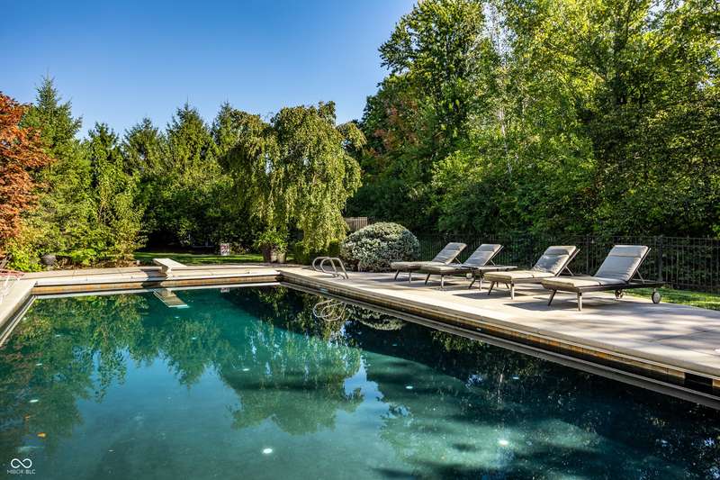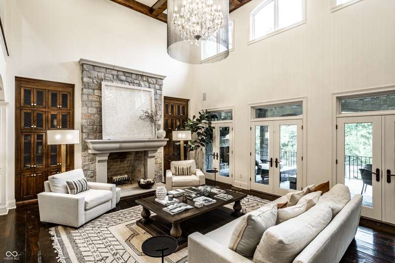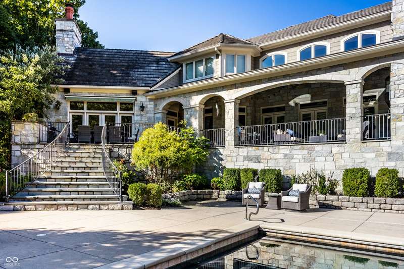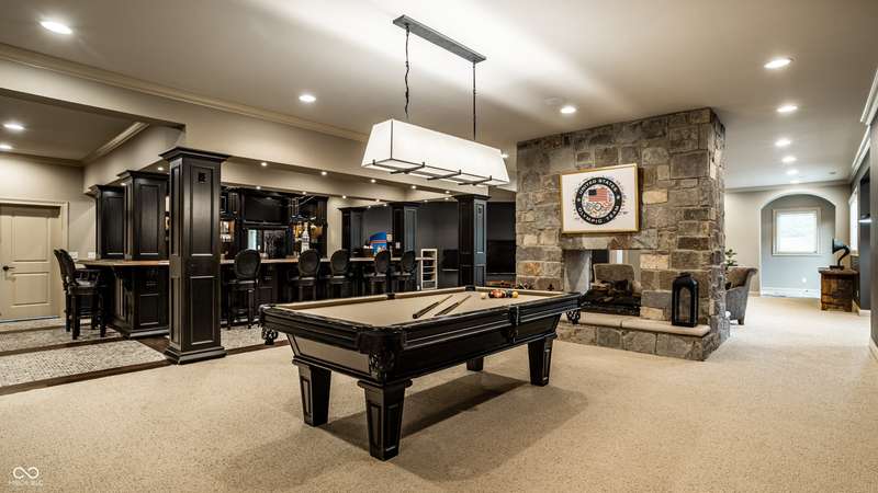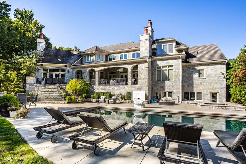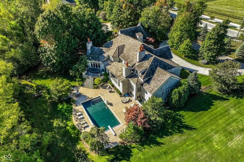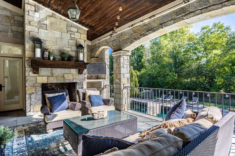Beautifully situated on a private, lush, 2-acre fenced lot, this stunning estate offers an unparalleled lifestyle. Outdoor living is a true retreat with a 40x20 gunite pool, hot tub, and expansive veranda with fireplace and grilling center, perfect for entertaining or relaxing in privacy. Yard has ample room for tennis court or pickleball court! Inside, guests are greeted by a soaring great room with 20-foot ceiling and a stone fireplace flanked by built-ins. The world-class chef's kitchen is a true centerpiece, featuring Wolf and Sub-Zero appliances, a pizza oven, a Miele coffee center, and an office nook conveniently tucked away behind the kitchen. The adjoining family room showcases an exposed truss ceiling and beautiful stone fireplace, as well as direct access to the outdoor living spaces. The main-floor primary suite is an elegant retreat with a spa-inspired bathroom and veranda access, creating a luxurious and serene sanctuary. Upstairs hosts five spacious bedrooms with four beautifully remodeled bathrooms. The walk-out lower level is an entertainer's paradise offering every amenity imaginable including a theatre area, 24x20 built-in bar with beverage cooler and beer tap, billiard area, wine cellar, double-sided fireplace, exercise room, and home office. Completing this impressive residence is a generous 4-car garage with raised ceiling for half-court basketball.