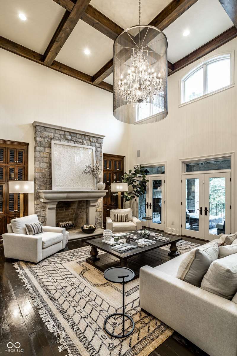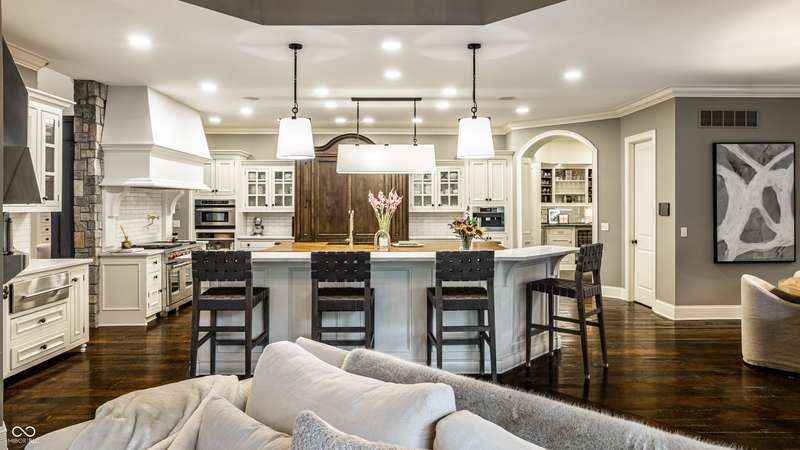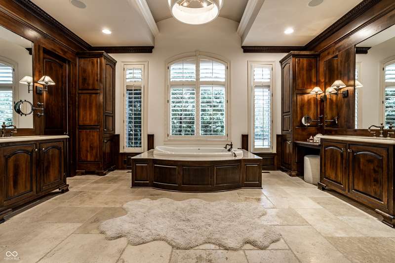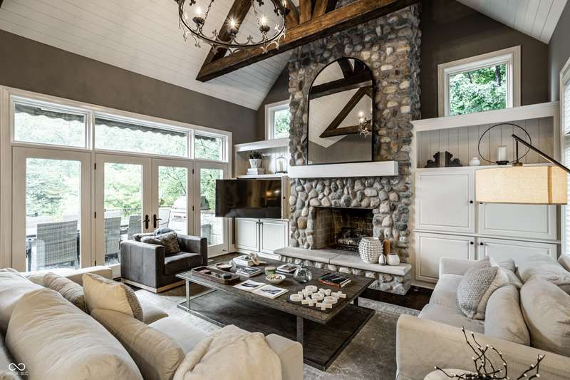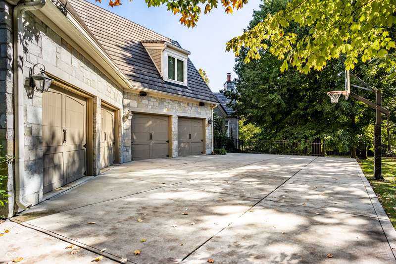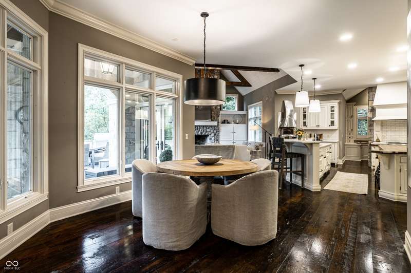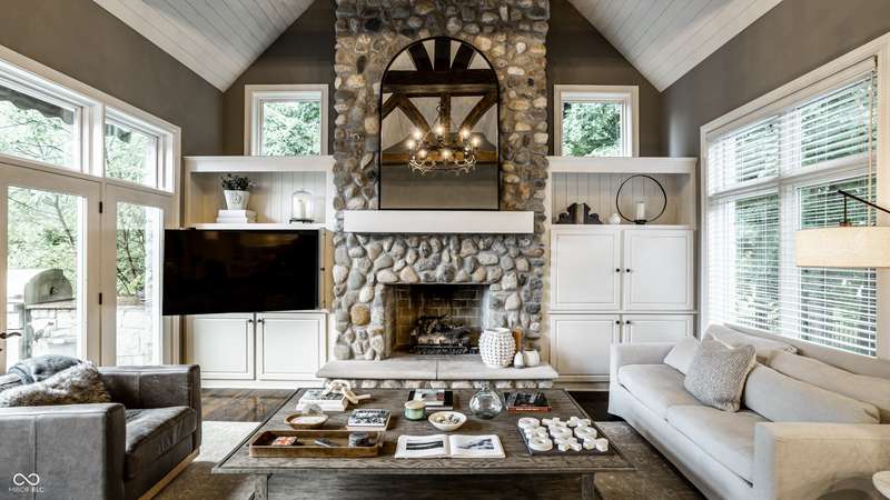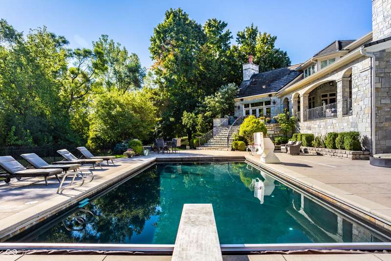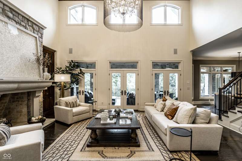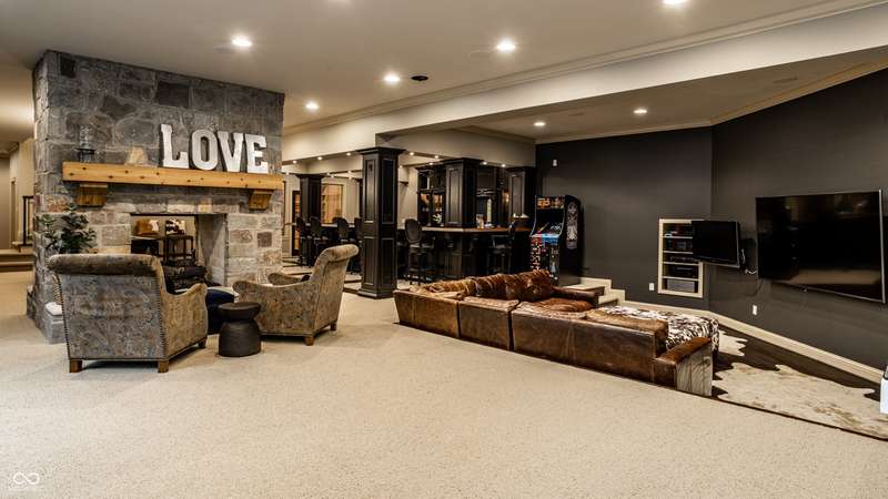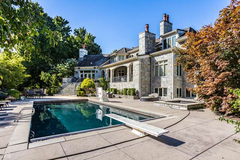 Beautifully situated on a private, lush, 2-acre fenced lot, this stunning estate offers an unparalleled lifestyle. Outdoor living is a true retreat with a 40x20 gunite pool, hot tub, and expansive veranda with fireplace and grilling center, perfect for entertaining or relaxing in privacy. Yard has ample room for tennis court or pickleball court! Inside, guests are greeted by a soaring great room with 20-foot ceiling and a stone fireplace flanked by built-ins. The world-class chef's kitchen is a true centerpiece, featuring Wolf and Sub-Zero appliances, a pizza oven, a Miele coffee center, and an office nook conveniently tucked away behind the kitchen. The adjoining family room showcases an exposed truss ceiling and beautiful stone fireplace, as well as direct access to the outdoor living spaces. The main-floor primary suite is an elegant retreat with a spa-inspired bathroom and veranda access, creating a luxurious and serene sanctuary. Upstairs hosts five spacious bedrooms with four beautifully remodeled bathrooms. The walk-out lower level is an entertainer's paradise offering every amenity imaginable including a theatre area, 24x20 built-in bar with beverage cooler and beer tap, billiard area, wine cellar, double-sided fireplace, exercise room, and home office. Completing this impressive residence is a generous 4-car garage with raised ceiling for half-court basketball.