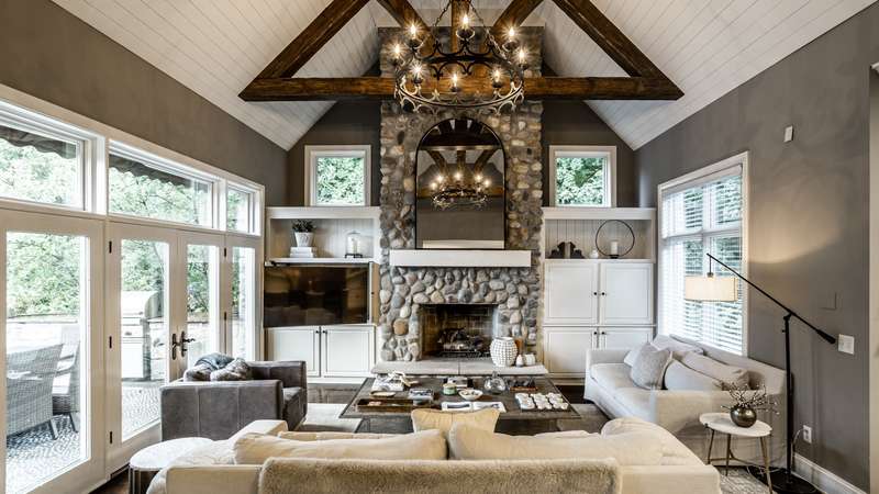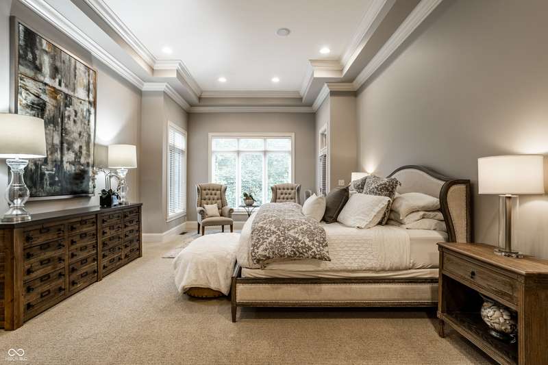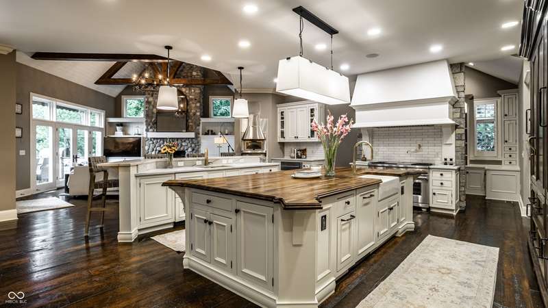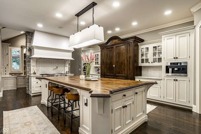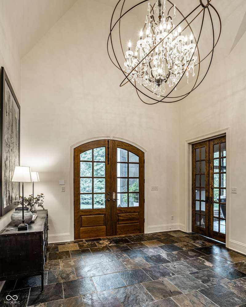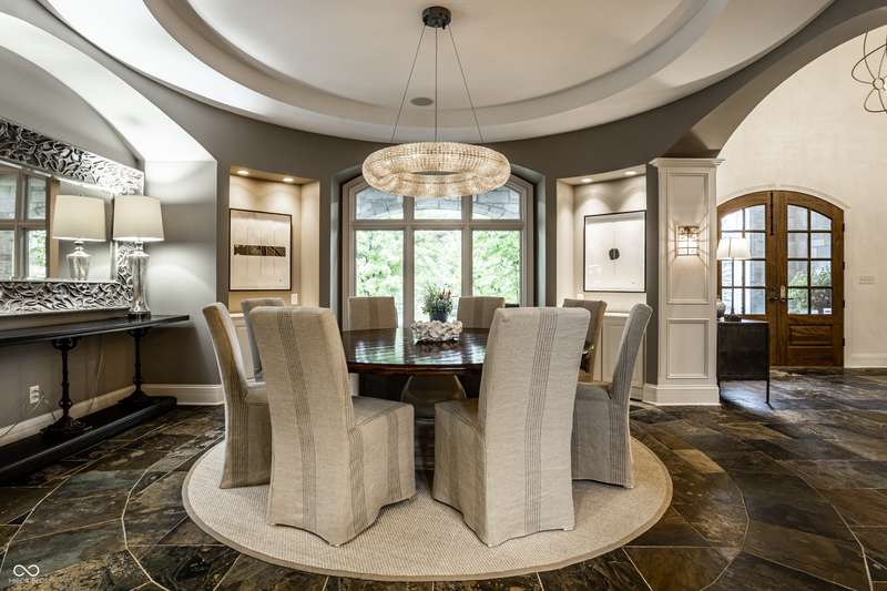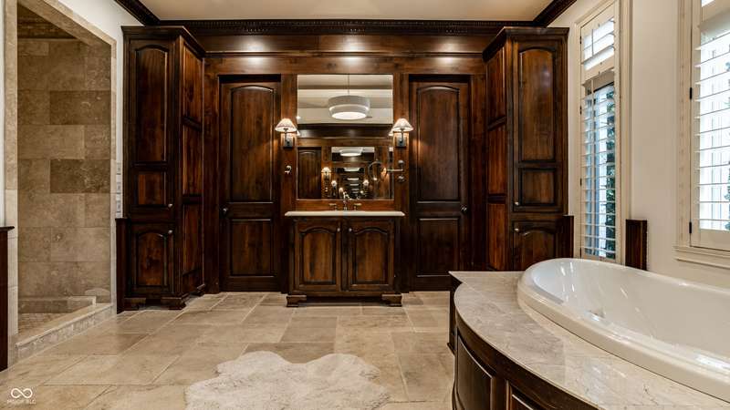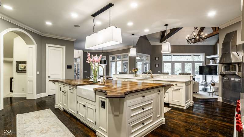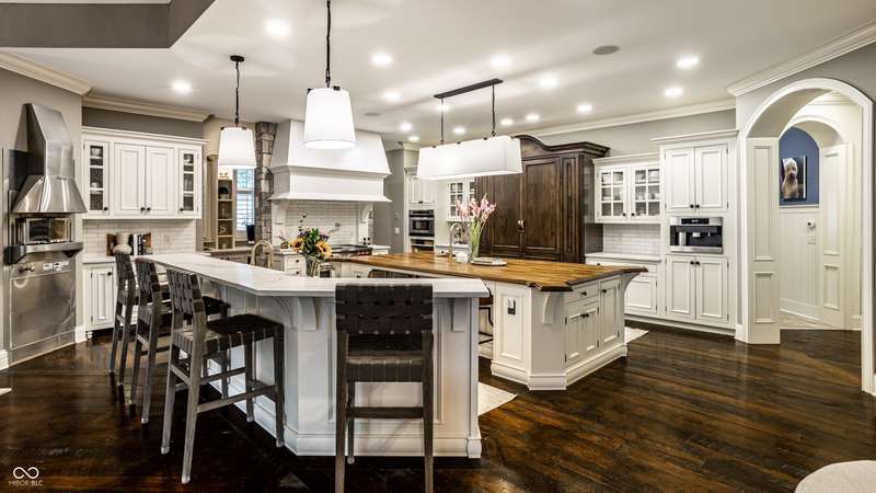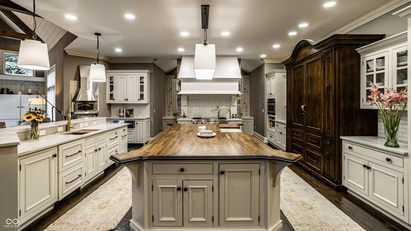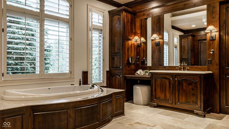 Beautifully situated on a private, lush, 2-acre fenced lot, this stunning estate offers an unparalleled lifestyle. Outdoor living is a true retreat with a 40x20 gunite pool, hot tub, and expansive veranda with fireplace and grilling center, perfect for entertaining or relaxing in privacy. Yard has ample room for tennis court or pickleball court! Inside, guests are greeted by a soaring great room with 20-foot ceiling and a stone fireplace flanked by built-ins. The world-class chef's kitchen is a true centerpiece, featuring Wolf and Sub-Zero appliances, a pizza oven, a Miele coffee center, and an office nook conveniently tucked away behind the kitchen. The adjoining family room showcases an exposed truss ceiling and beautiful stone fireplace, as well as direct access to the outdoor living spaces. The main-floor primary suite is an elegant retreat with a spa-inspired bathroom and veranda access, creating a luxurious and serene sanctuary. Upstairs hosts five spacious bedrooms with four beautifully remodeled bathrooms. The walk-out lower level is an entertainer's paradise offering every amenity imaginable including a theatre area, 24x20 built-in bar with beverage cooler and beer tap, billiard area, wine cellar, double-sided fireplace, exercise room, and home office. Completing this impressive residence is a generous 4-car garage with raised ceiling for half-court basketball.