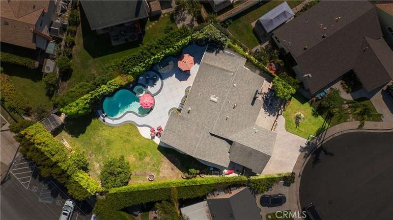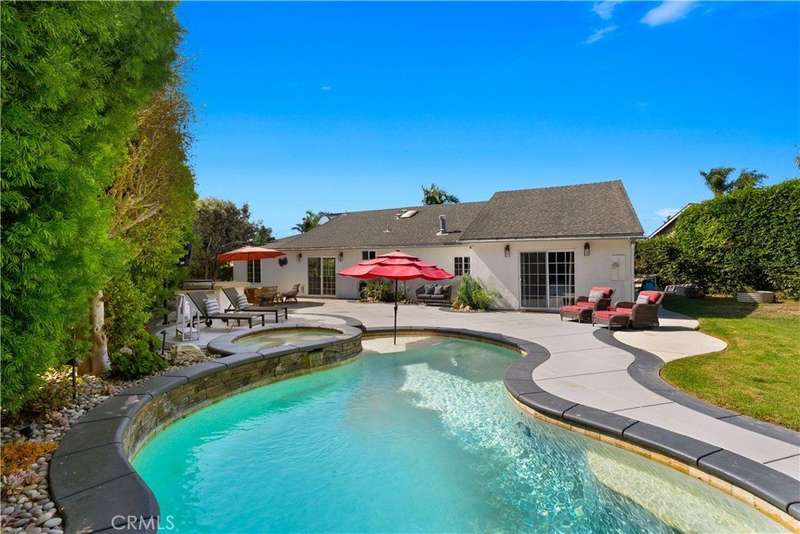 Nestled at the end of a serene cul-de-sac in one of South Huntington Beach’s most sought-after neighborhoods, this exceptional residence blends luxury, comfort, and coastal charm—just two miles from the beach via the river trail. Set on a sprawling 9,100 sq. ft. lot, this beautifully appointed four-bedroom, two-bathroom home offers expansive indoor and outdoor living. The inviting fenced front patio welcomes you inside, where a gas fireplace creates a warm focal point in the living room. A formal dining room and open-concept kitchen and family room provide effortless flow, enhanced by a custom built-in desk and organization station ideal for today’s lifestyle. Each of the three generous secondary bedrooms features custom closets, while a multi-purpose room offers flexibility and the potential to add a third full bathroom. The spacious primary suite is a private retreat, showcasing a dual-sided fireplace shared with the spa-inspired ensuite bath, complete with a soaking tub, walk-in shower, and dual custom closets. Modern upgrades include air conditioning, a tankless water heater, and a gas range. Outdoors, the possibilities are endless—create your dream backyard around the resort-style pool and spa, greenhouse, and fruit trees including apple, lime, lemon, and avocado. With city-approved plans for an ADU, this property offers exceptional potential for future expansion or guest accommodations. Surrounded by parks, trails, and friendly neighbors, this quiet enclave captures the essence of refined coastal living—where luxury meets lifestyle and every day feels like a getaway.