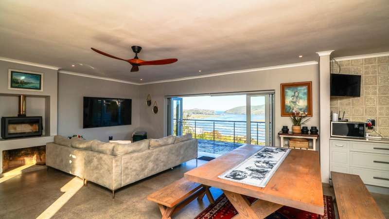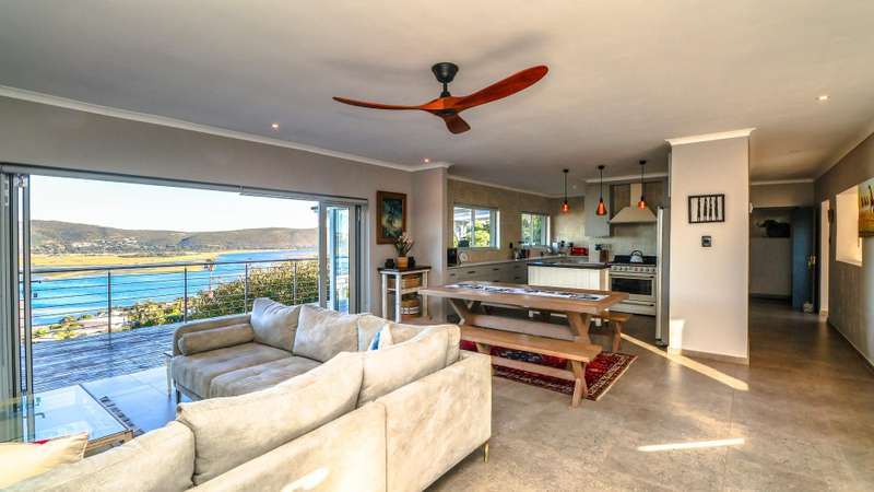 Exclusive Mandate: These are the kind of views that postcards envy and camera lenses simply can?ÇÖt do justice. With the Knysna Lagoon and The Heads practically winking at you from your balcony, this home?ÇÖs location is nothing short of extraordinary. This splendid residence features four generously sized bedrooms, each with its own en suite bathroom?Çöoffering privacy and comfort for everyone. Upstairs, the open-plan living area flows effortlessly into the kitchen, creating a warm and welcoming space ideal for both everyday living and entertaining. Slide open the doors to a grand balcony, where the views stretch out like a well-told story, revealing nature?ÇÖs finest chapters. Downstairs, three additional bedrooms continue the theme of indulgent privacy, each with its own en suite and direct access to the lower deck. Imagine waking up, stepping outside, and being greeted by lagoon views. This isn?ÇÖt just a home?Çöit?ÇÖs a daily invitation to live beautifully, breathe deeply, and never settle for mediocre. In addition to the main residence, there?ÇÖs a newly renovated one-bedroom flat?Çöideal for extended family, guests, or as an income-generating unit. It features its own open-plan kitchen and living area upstairs, with a spacious bedroom and en suite bathroom below. Private access from both levels ensures flexibility and privacy. The property is fully fenced. For boating enthusiasts, there's dedicated undercover parking for your boat, ready for spontaneous lagoon adventures. There?ÇÖs also ample off-street parking behind a remote-controlled gate for added convenience. This home truly ticks all the boxes: location, views, space, privacy, and thoughtful extras?Çöideal for relaxed everyday living or as a high-potential holiday investment.