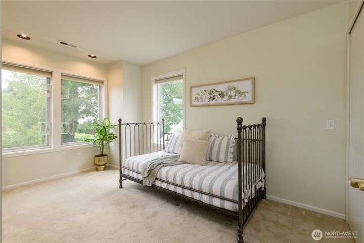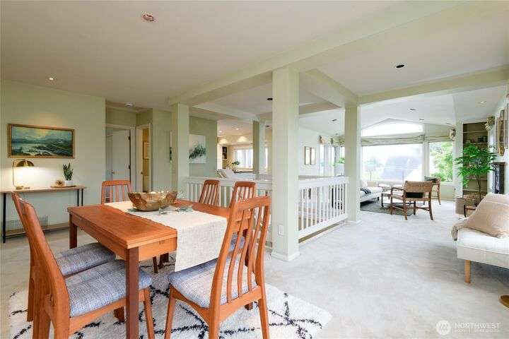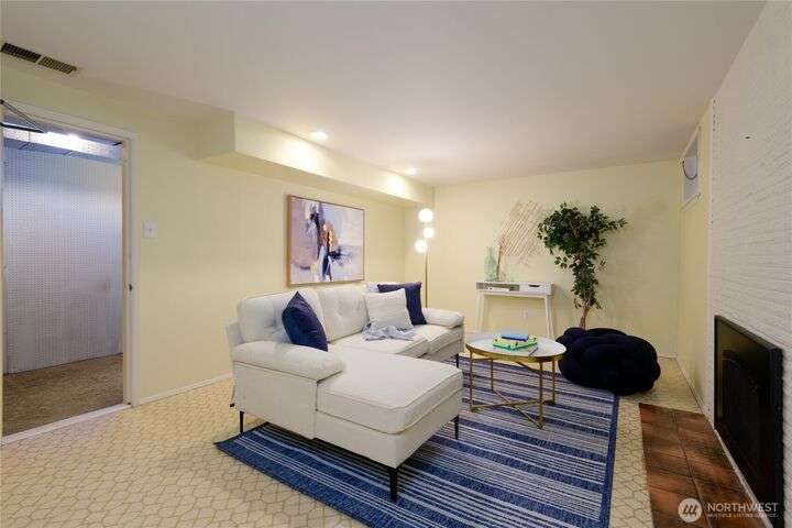 NEW PRICE! Set high above the street to maximize views of Mt Rainier, downtown, Alki, and the Olympics, this reverse-floorplan 3 bdrm home has a fireplace and bathroom on every floor, a soapstone counter on the kitchen island, two kitchen sinks with garbage disposals, a dumbwaiter, and a fully-fenced backyard garden with a fruit bearing apple tree. Living room, dining room, kitchen, and bedroom/office on top floor (cool even on hot days); 2 bedrooms and 2 bathrooms on entry level; lower level has lots of potential: currently a laundry rm, storage areas, and large room with 3rd fireplace. New furnace, fridge, microwave, and oven in 2023. New roof in 2020. Plumbing & electrical updated. Easy access to d/t, Magnolia village, UW and Seattle U.