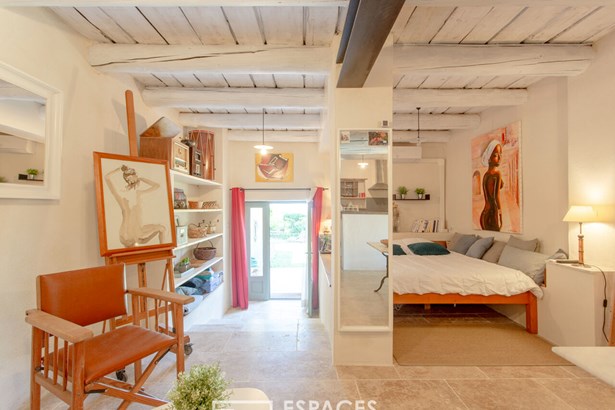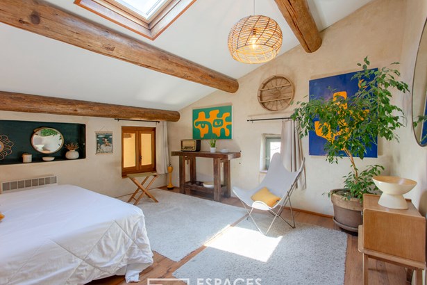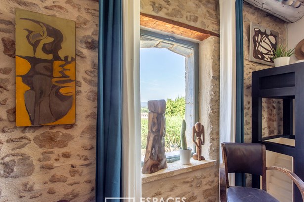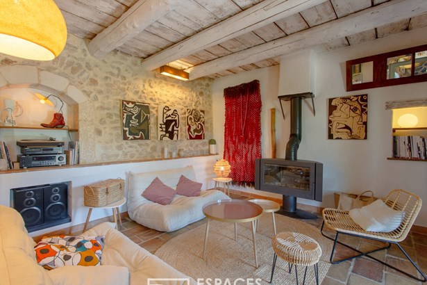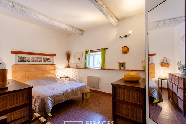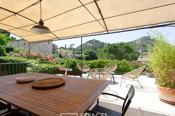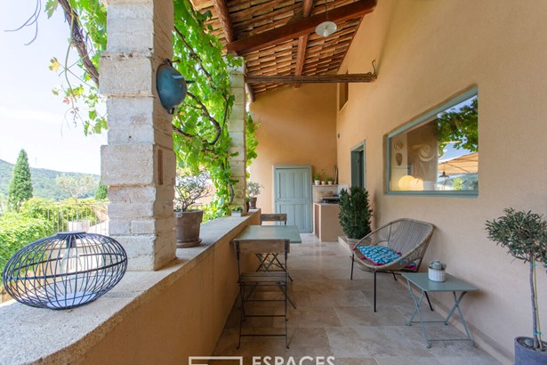 The main house opens onto a beautiful living space, with a kitchen open to the living room and dining room, promoting conviviality and fluidity between the volumes. The whole property benefits from direct access to the terrace which offers a breathtaking view of the Castellas and the surrounding landscapes.