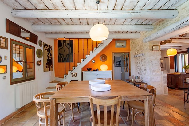 In the charming village of Saint-Victor-la-Coste, 25 minutes from Uzes and Avignon, this 259 sqm stone farmhouse blends harmoniously into the heart of a remarkable historical and natural environment.