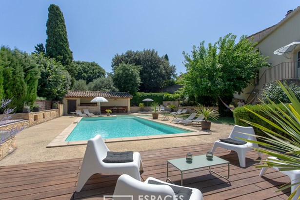Equipped with a superb swimming pool, several relaxation areas, and a pool house equipped with a summer kitchen, you can fully enjoy the Mediterranean climate.