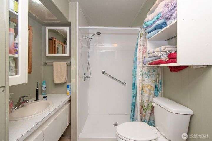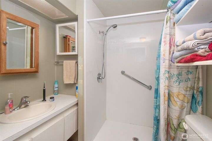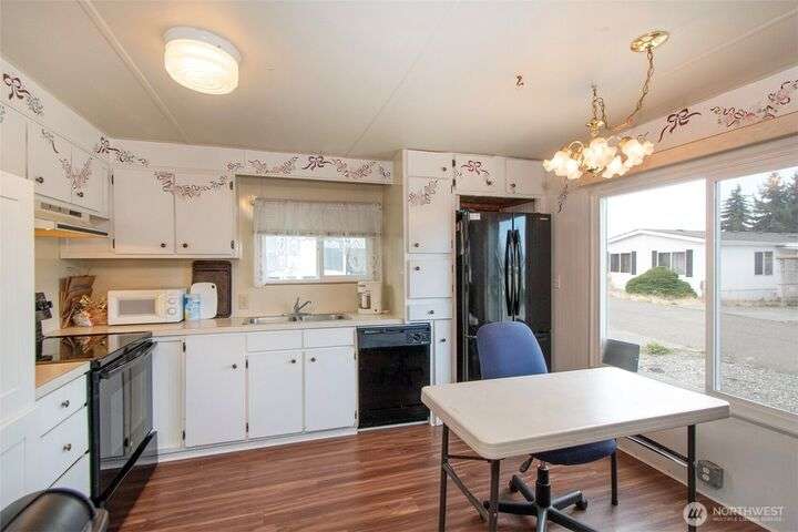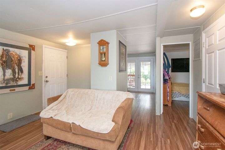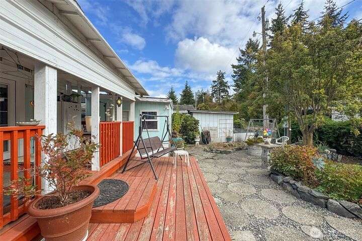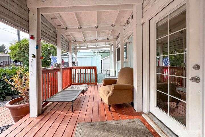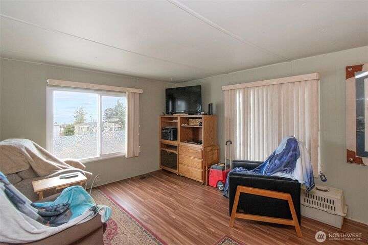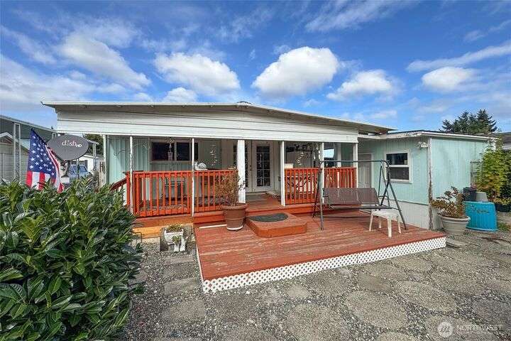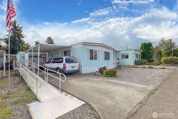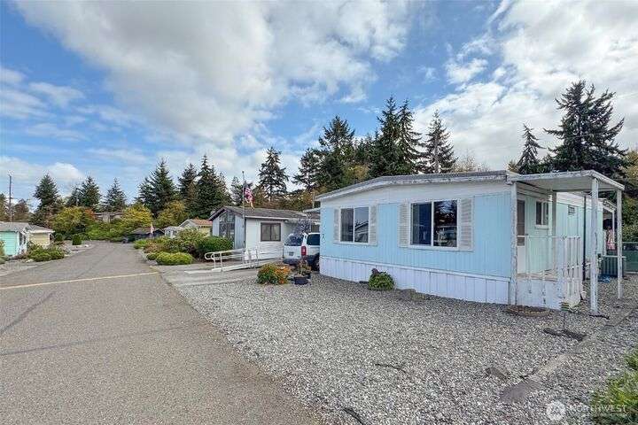 Very affordable home in nice 55+ park. Modifications have been made for wheelchair accessibility, including a ramp to front door and widened doors/entryway to larger bedroom. Other recent upgrades include roof, walk-in shower and LVP flooring throughout. Private and peaceful fenced backyard receives full Southern exposure and features several planting areas and a spacious two level deck. Located in a quiet area close to downtown Sequim, near dining, shopping and other amenities. Hide-A-Way park allows up to two pets which are subject to park approval. Space rent is only $500/mo, and tenant will need pre-approval from park management. Get your broker and check this gem out, priced to sell!