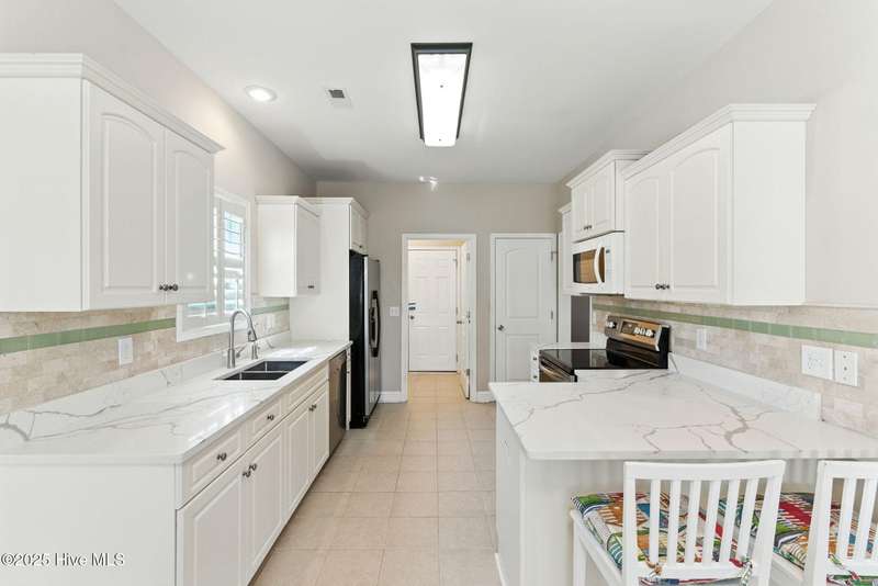 Live the coastal dream in this 3BR, 2 BA house in Seaside North. Choose between 2 beaches, Ocean Isle Beach and Sunset Beach within 10 minutes from this home. Move right in and enjoy the beach lifestyle you've been dreaming of. Floors updated with LVP. Open living area with vaulted ceiling, dining area with tray ceiling. Kitchen features white cabinets with quartz countertops, tile floor and stainless appliances plus bay window area for kitchen table eating area. Enjoy the spacious screened porch accessed from sliding doors in the living room. The large picture window screens allow for beautiful, unobstructed views of the fenced back yard with mature trees and plantings. Primary bedroom has tray ceiling with crown and ceiling fan, large walk-in closet and ensuite with double sinks and walk-in shower. Two additional bedrooms for guest, office or flex room. Plantation shutters on all interior windows and Hurricane shutters on all exterior windows. Solar panels for efficient energy costs. HVAC new 2024. House breaker box set for portable generator to convey with the home. 2 Car Garage with epoxy floor and driveway will fit additional vehicles. Easy HOA with few restrictions. Bring your boat or water toys and enjoy living at the beach! Within walking distance to grocery, shopping and restaurants.