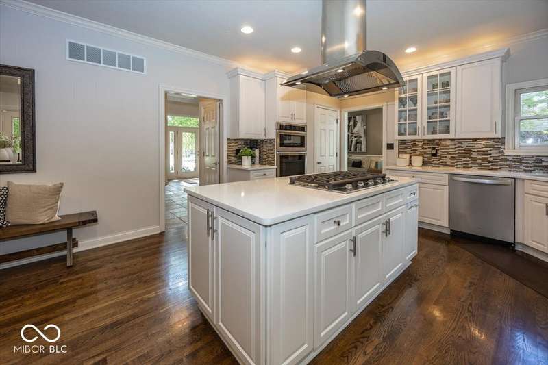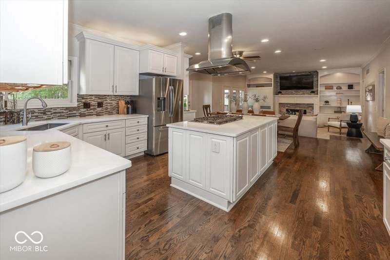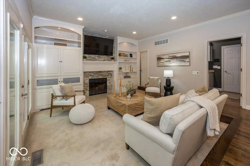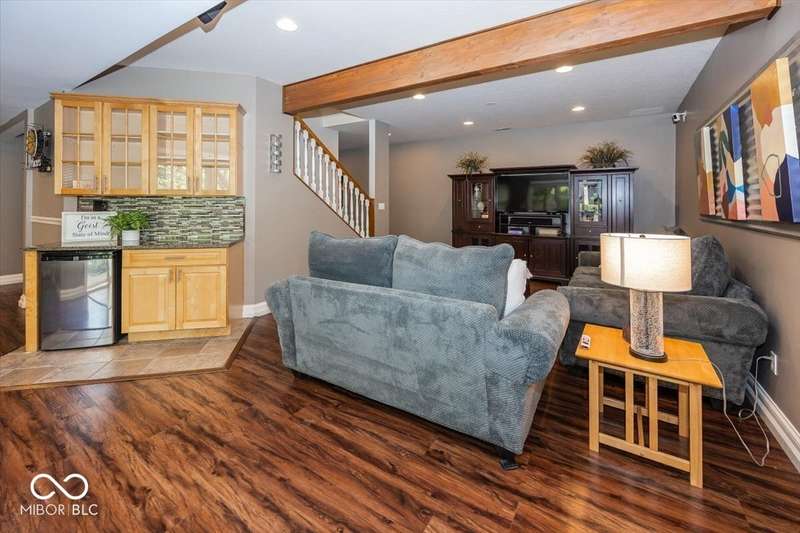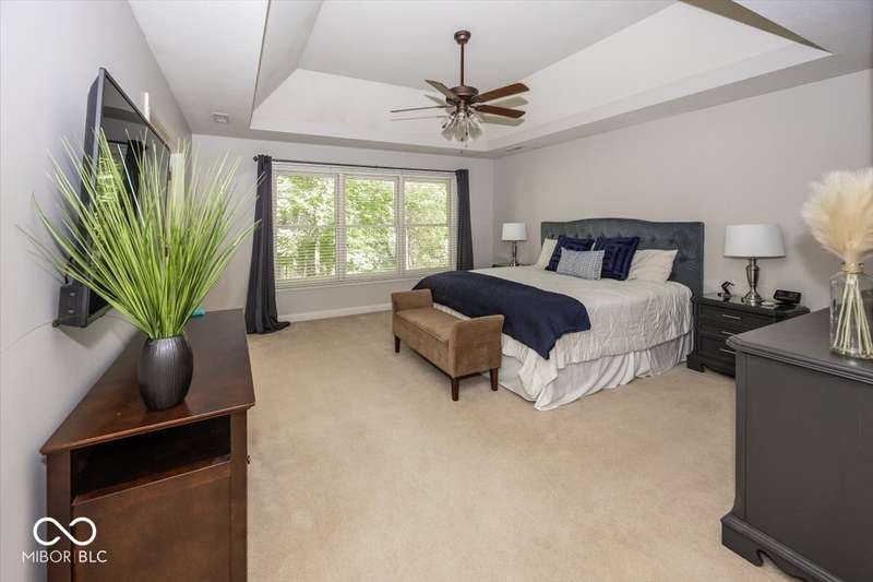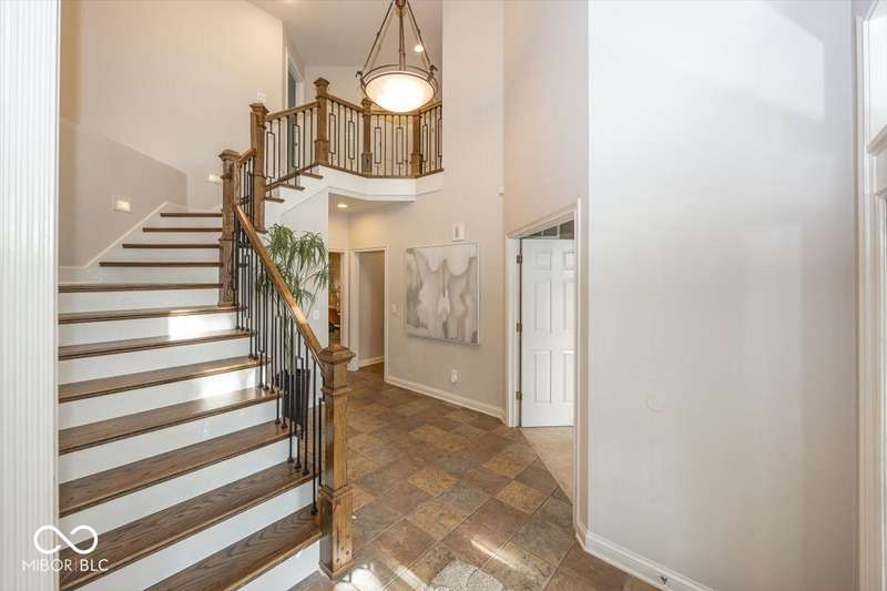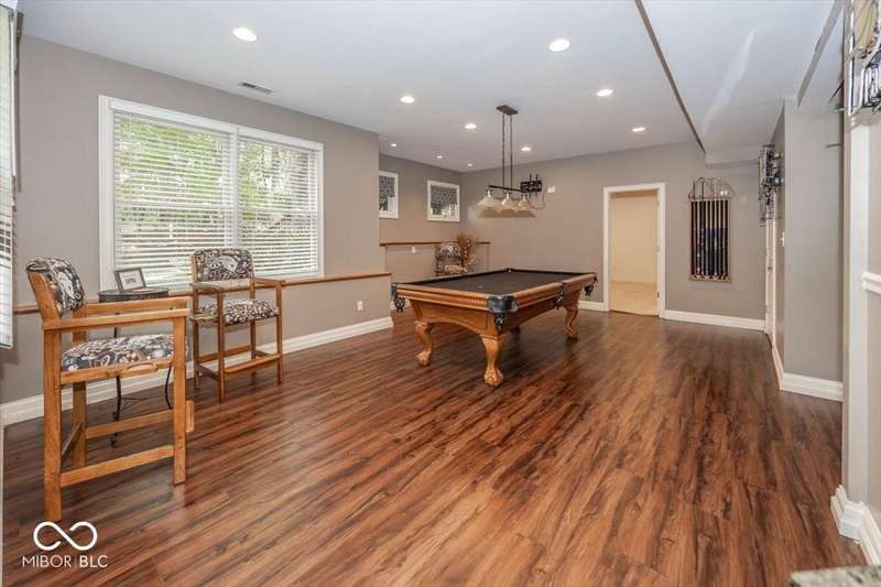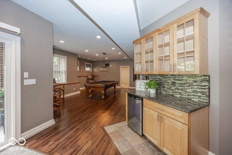 Located in the popular lakeside neighborhood of Cambridge, you'll find this well cared for home on a BEAUTIFUL treed lot! The open floorplan is perfect for entertaining, and you'll love the views as the leaves change colors this fall! The updated kitchen includes white cabinetry, a double oven (one oven and one micro/oven combo), a gas range with hood, quartz countertops, and stainless steel appliances. The family room with gas fireplace and bookshelves open up to the deck. The living room dining room is a large area and is ideal for a large family gathering! The office is also located on the main floor. Upstairs, you'll find four generously sized bedrooms. The primary suite has an updated bathroom and large closet. The walkout basement has lots of windows creating lots of light! There is a tv area, a billiards area, a wine cellar, a bar, a spare bedroom, and a full bath! Outside is a large, PRIVATE backyard complete with a deck and a patio area with pergola right outside the walkout basement. There's a mulched in area with stone path that would be perfect for evening relaxation! This home is just a few lots down from the park and lake. The Indianapolis Yacht Club is also just outside the neighborhood providing a great and reasonably priced option for a pool and clubhouse! Close to Hamilton Town District. Geist Elementary is across from the neighborhood, and the other HSE schools are right up the street on Olio Road. There's so much to love about this home - come see for yourself!